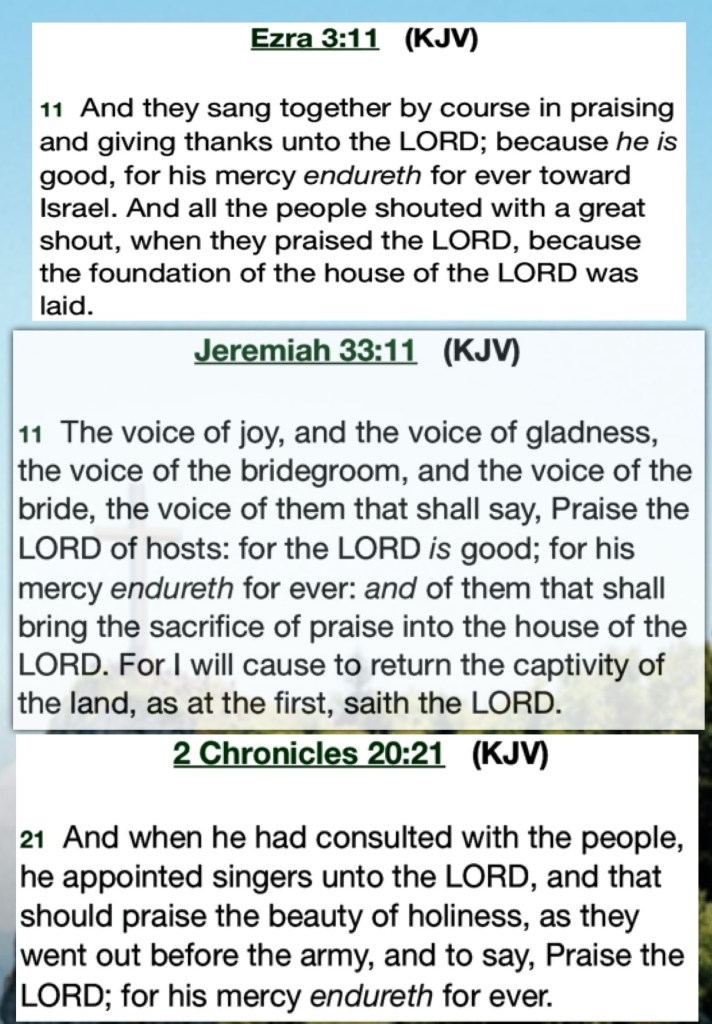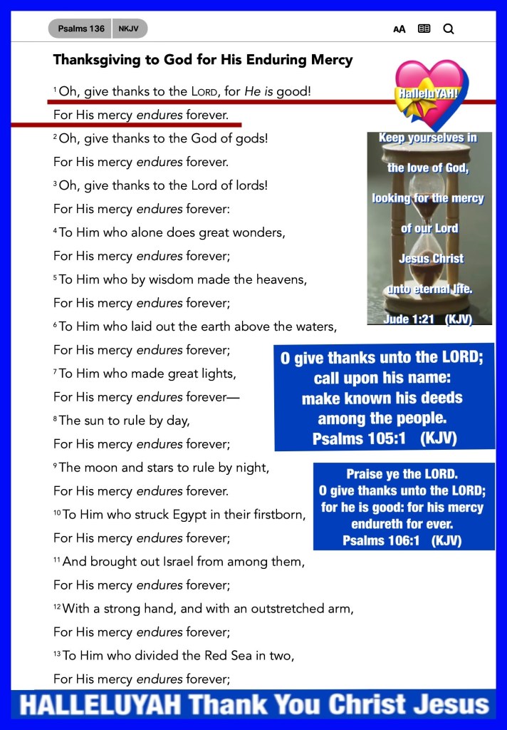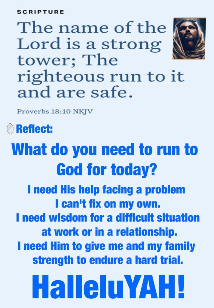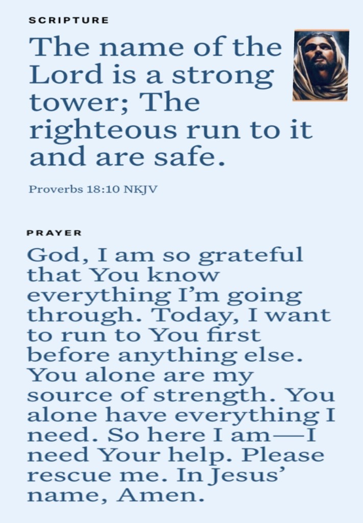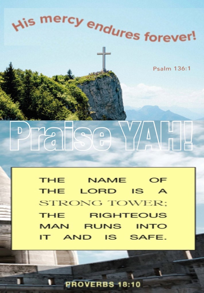 “Oh, give thanks to the Lord, for He is good! For His mercy endures forever.” Psalms 136:1 “The name of the Lord is a strong tower; The righteous run to it and are safe.” Proverbs 18:10