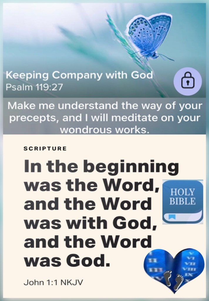 “Make me understand the way of Your precepts, So that I will meditate (focus my thoughts) on Your wonderful works.” Psalms 119:27 AMP “In the beginning [before all time] was the Word (Christ), and the Word was with God, and the Word was God Himself.” John 1:1 AMP