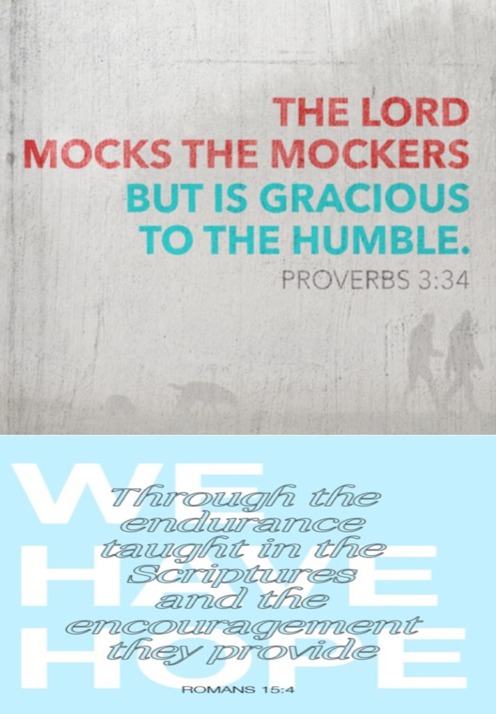 βSurely He scorns the scornful, But gives grace to the humble.β Proverbs 3:34 βFor whatever things were written before were written for our learning, that we through the patience and comfort of the Scriptures might have hope.β Romans 15:4
