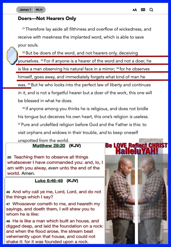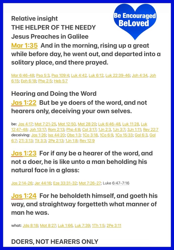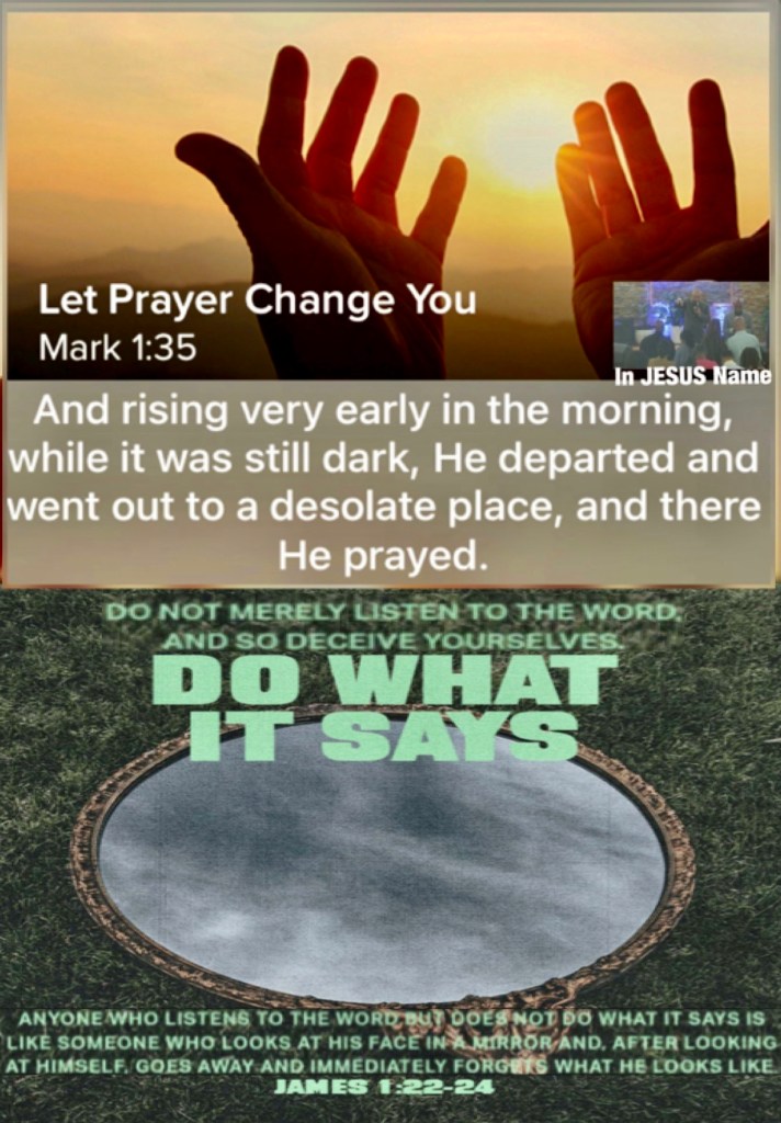 “Now in the morning, having risen a long while before daylight, He went out and departed to a solitary place; and there He prayed.” Mark 1:35 “But be doers of the word, and not hearers only, deceiving yourselves. For if anyone is a hearer of the word and not a doer, he is like a man observing his natural face in a mirror; for he observes himself, goes away, and immediately forgets what kind of man he was.” James 1:22-24