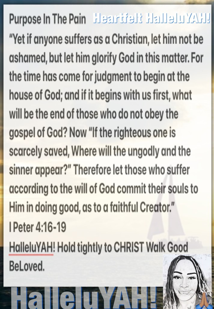I pray beloved brethren that we take seriously The Perfecting of our mortal bodies because it’s The Purpose In The Pain, one only soothed by THE WORD OF YAH And His HOLY SPIRIT, one that will leave you with a deep resounding HalleluYAH! YAH Only Knows what you have been through or are living through, it’s not to break you it’s to build you up, mold, shape, deliver and heal you; mostly it will make us one with our Savior. A Christian Follows CHRIST Who already went through it (All Of It) for us and with us again 🤔It’s only worth it if we are Saved, CHRIST Loves you and believes you are worth that risk. Will we Love Him enough to Trust Him and to Bless someone who is currently lost? Beloved it’s time we Come HOME, our FATHER Is Calling.