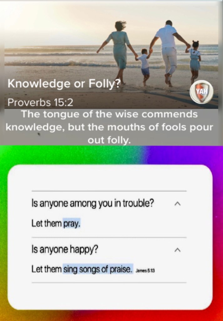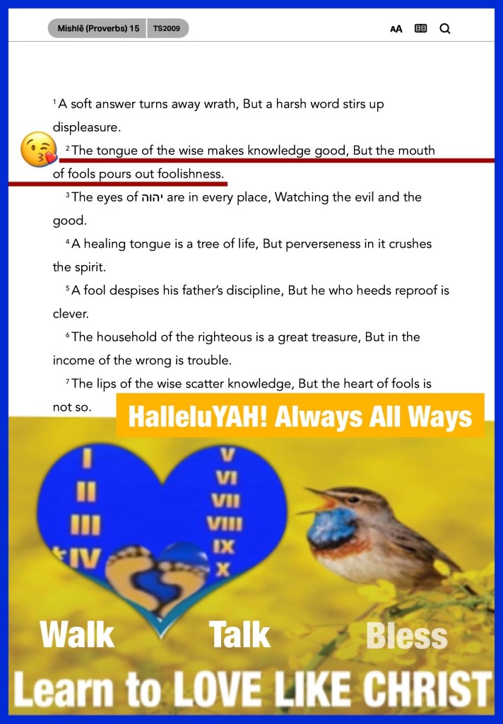 “The tongue of the wise uses knowledge rightly, But the mouth of fools pours forth foolishness.” Proverbs 15:2 “Is anyone among you suffering? Let him pray. Is anyone cheerful? Let him sing psalms.” James 5:13