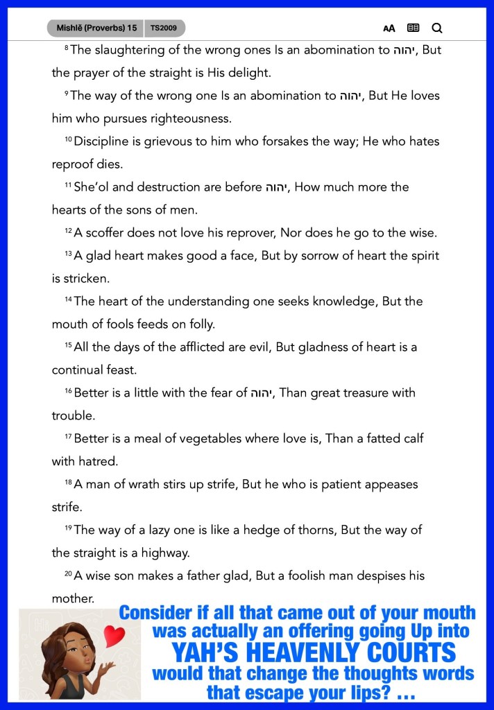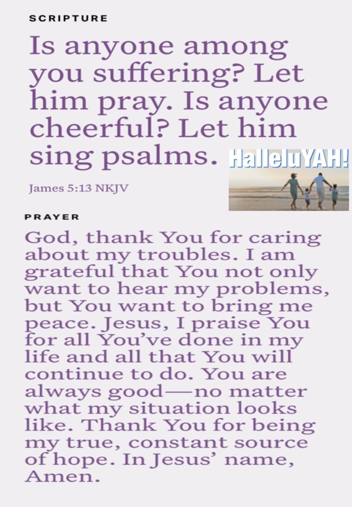 Beloved, What’s the point in Prayer if we’re coming at YAH wrong?… It’s Preparation Day, let’s dig in. “The tongue of the wise speaks knowledge that is pleasing and acceptable, But the [babbling] mouth of fools spouts folly.” Proverbs 15:2 AMP “Is any of you suffering evil? Let him pray. Is anyone in good spirits? Let him sing psalms.” Ya‛aqoḇ (James) 5:13 TS2009 Prayer is a conversation with our HEAVENLY FATHER The Only One Who Has Power to change, heal, do anything most of all Save our Souls, we must get our hearts minds etc together it’s Preparation Day BeLoved, let’s get ready to meet our GOD. HalleluYAH!