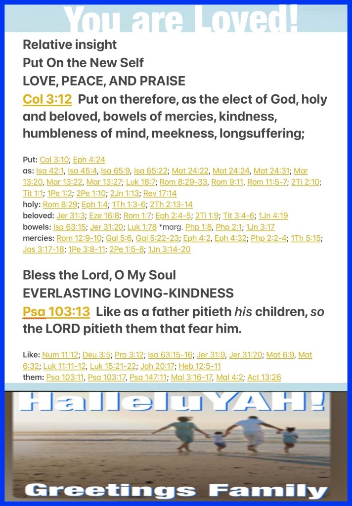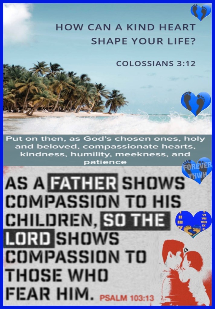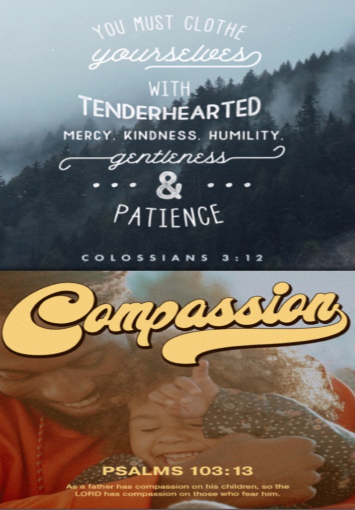 “Therefore, as the elect of God, holy and beloved, put on tender mercies, kindness, humility, meekness, longsuffering;” Colossians 3:12 “As a father pities his children, So the Lord pities those who fear Him.” Psalms 103:13