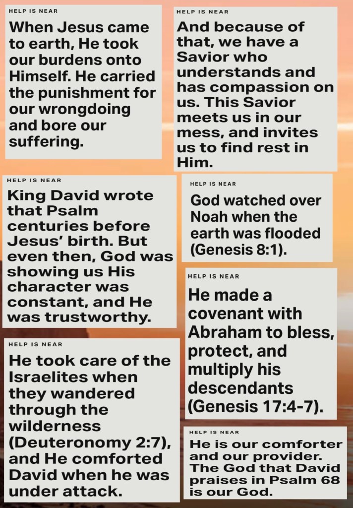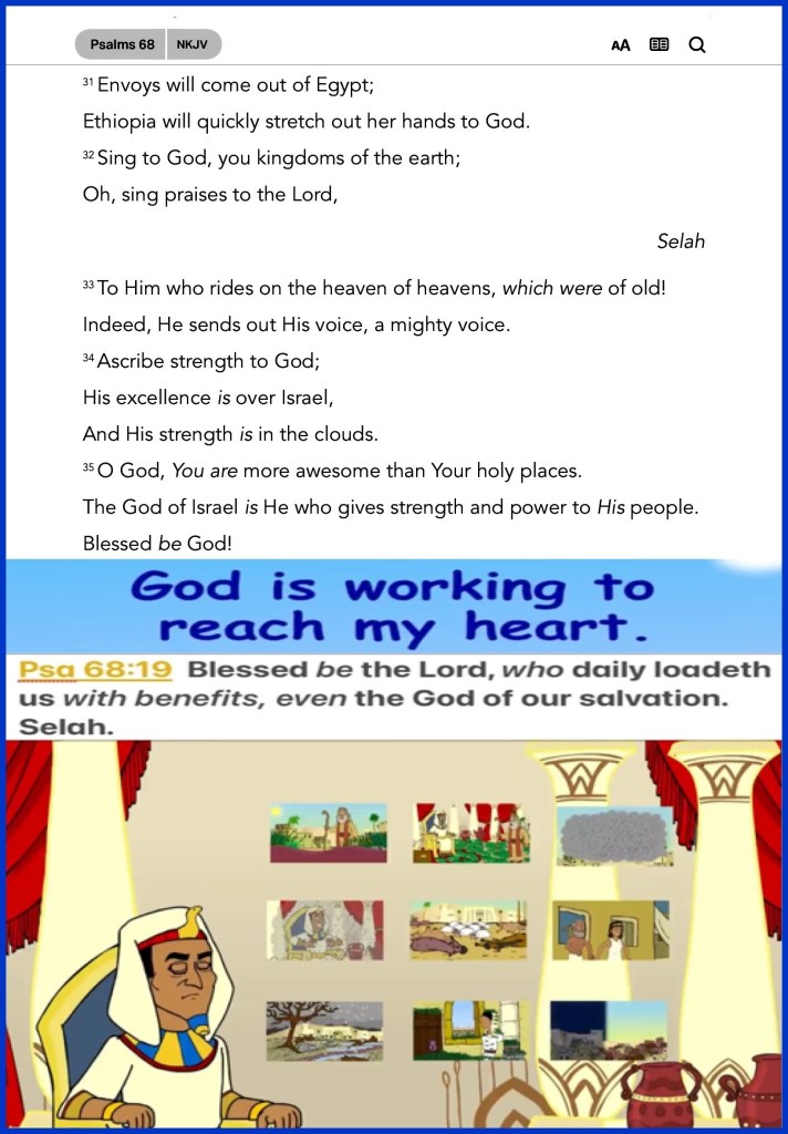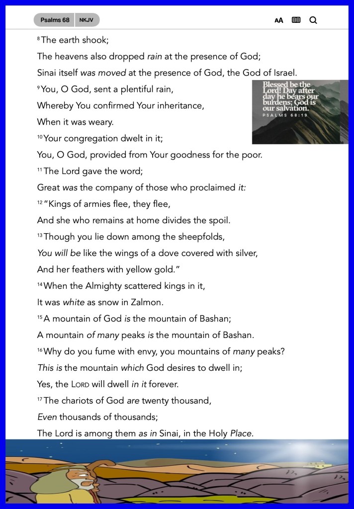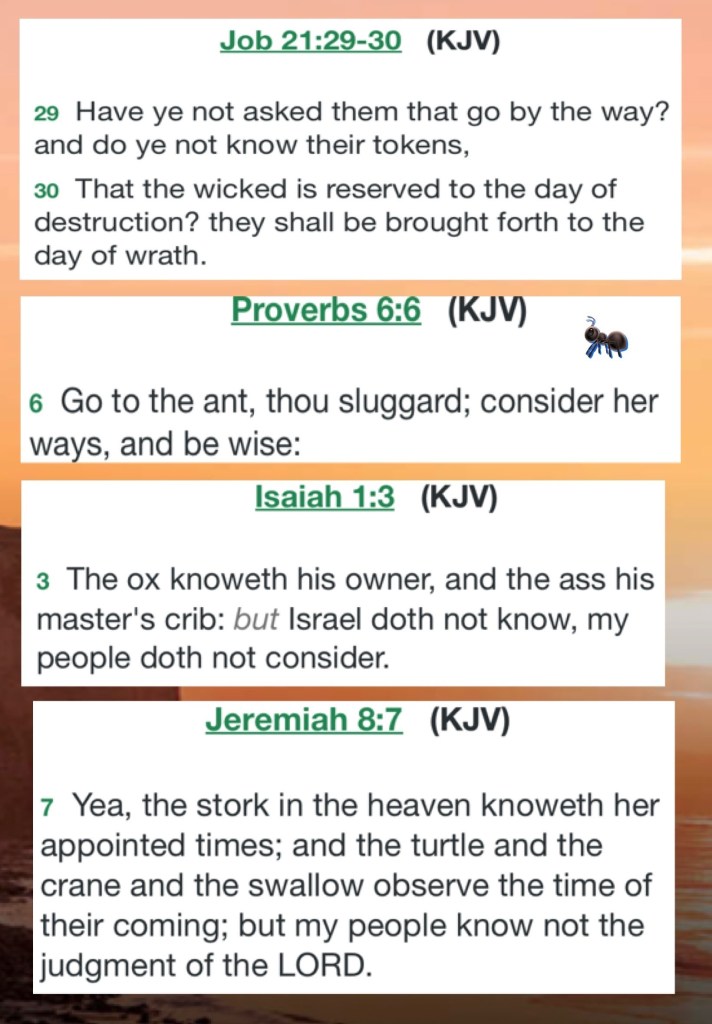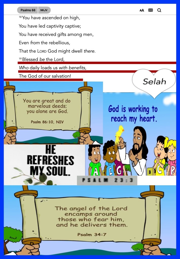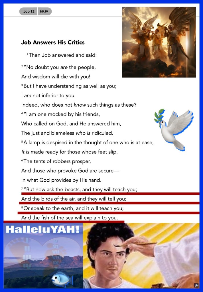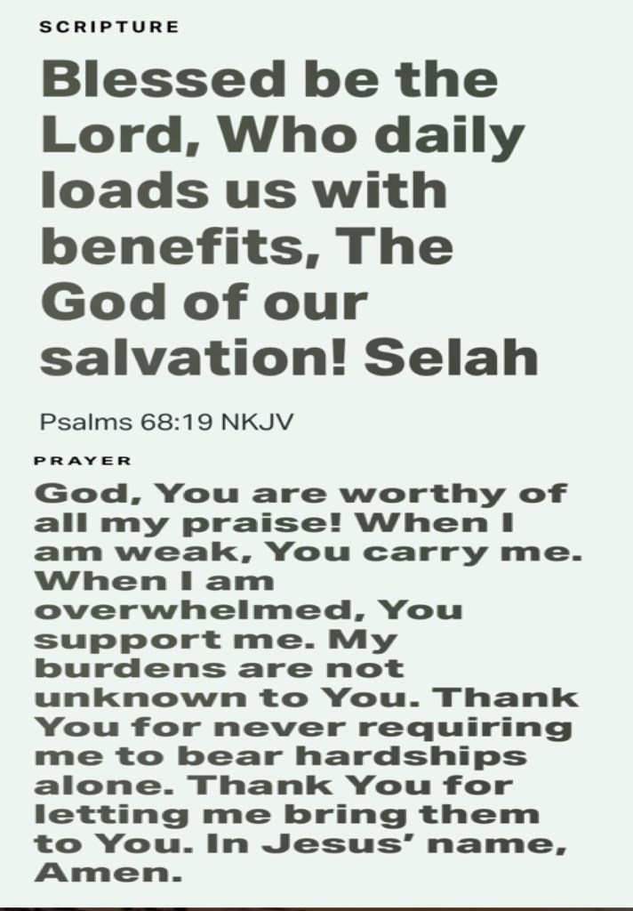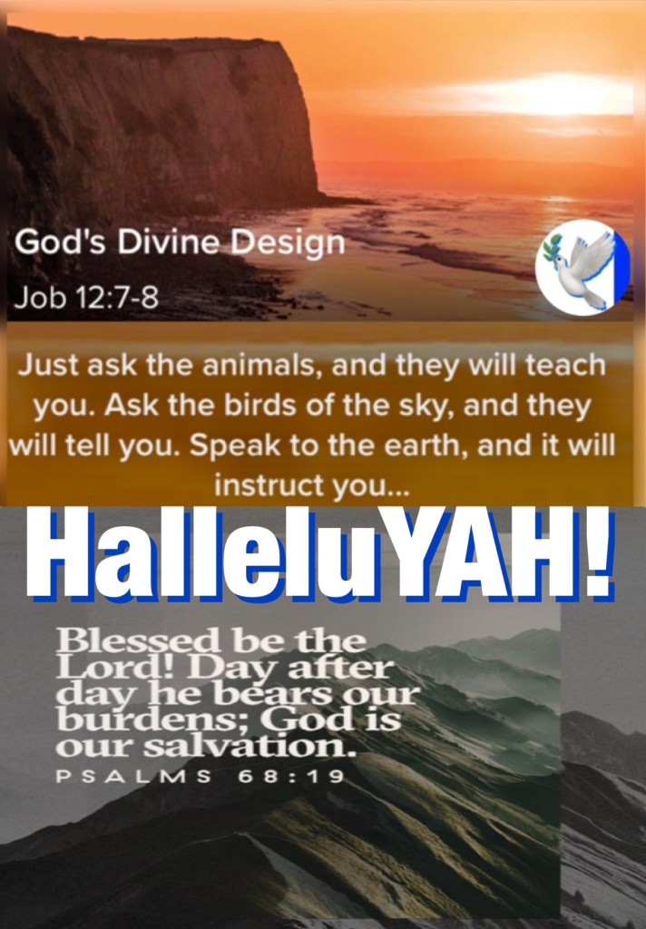 ““But now ask the beasts, and they will teach you; And the birds of the air, and they will tell you; Or speak to the earth, and it will teach you; And the fish of the sea will explain to you.” Job 12:7-8 “Blessed be the Lord, Who daily loads us with benefits, The God of our salvation! Selah” Psalms 68:19