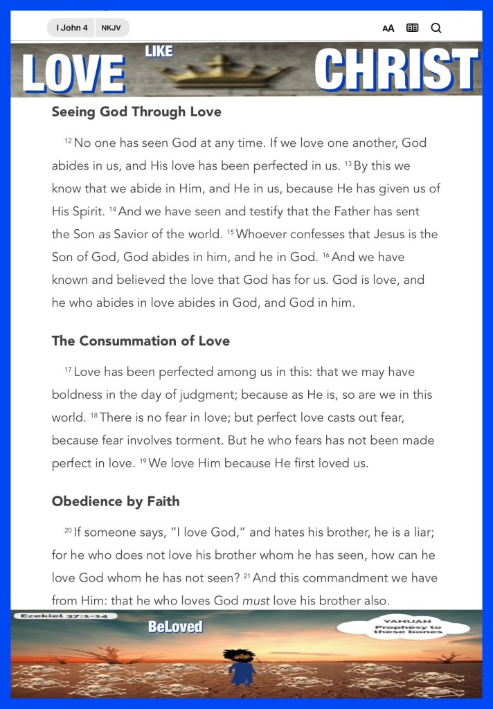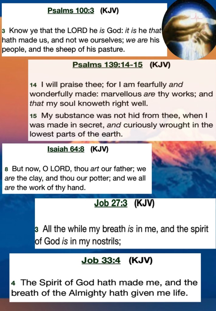 “And the Lord God formed man of the dust of the ground, and breathed into his nostrils the breath of life; and man became a living being.” Genesis 2:7 “Beloved, if God so loved us, we also ought to love one another.” I John 4:11