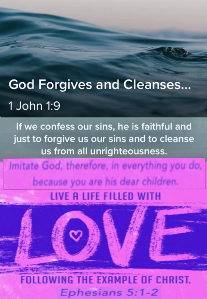 “If we confess our sins, He is faithful and just to forgive us our sins and to cleanse us from all unrighteousness.” I John 1:9 “Therefore be imitators of God as dear children.” Ephesians 5:1