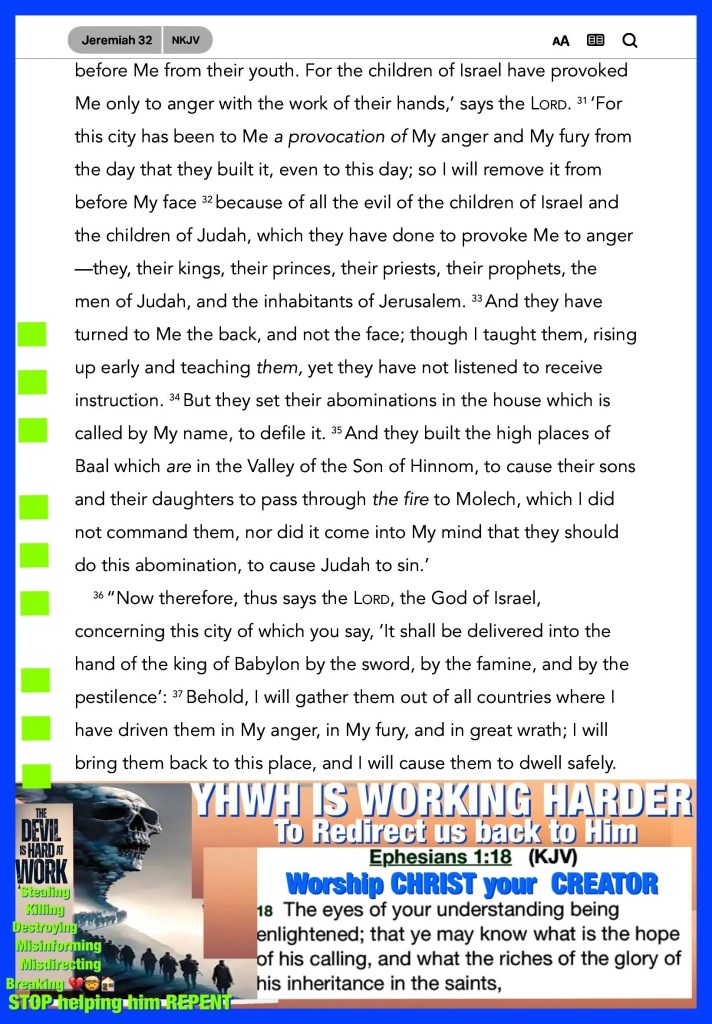 Restoration of His Family. The Great Controversy in a nutshell: we’re in a custody battle…The rightful desire of GOD is Relationship with His people, Worship/ Reverence and as our FATHER CREATOR GOD that’s the least we could do in return for all He’s doing and has done. The enemy of our souls works tirelessly to thwart that and usurp YAH’S Worship for himself (every form of idolatry leads straight back to the enemy), everyone who refuses the gift of Life, Love, Salvation becomes the lawful captive child of the enemy, lost and slated for destruction. CHRIST Sacrificed Himself to prevent that. HalleluYAH! “and I will give them one heart and one way, that they may [reverently] fear Me forever, for their own good and for the good of their children after them.” Jeremiah 32:39 AMP “May He grant you out of the riches of His glory, to be strengthened and spiritually energized with power through His Spirit in your inner self, [indwelling your innermost being and personality],” Ephesians 3:16 AMP