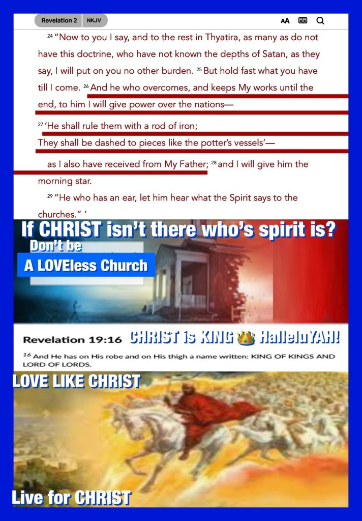 “And he who overcomes, and keeps My works until the end, to him I will give power over the nations— ‘He shall rule them with a rod of iron; They shall be dashed to pieces like the potter’s vessels’— as I also have received from My Father;” Revelation 2:26-27 “The Lord is near to those who have a broken heart, And saves such as have a contrite spirit.” Psalms 34:18
