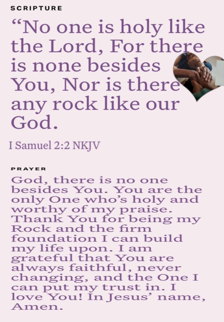 “For even the Son of Man did not come to be served, but to serve, and to give His life a ransom for many.”” Mark 10:45 ““No one is holy like the Lord, For there is none besides You, Nor is there any rock like our God.” I Samuel 2:2