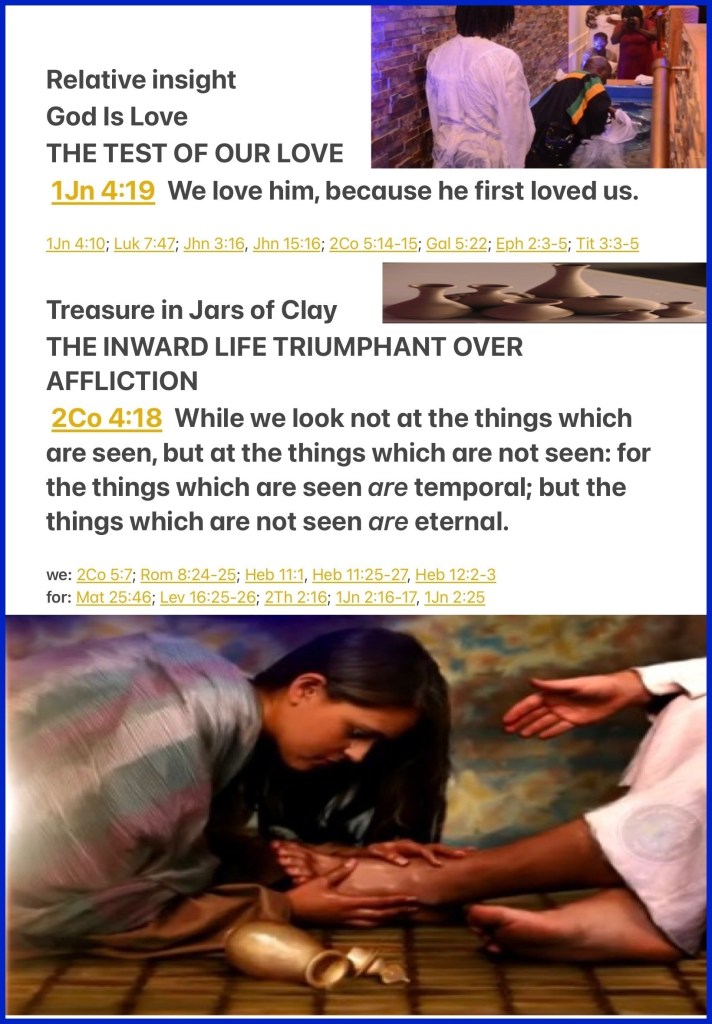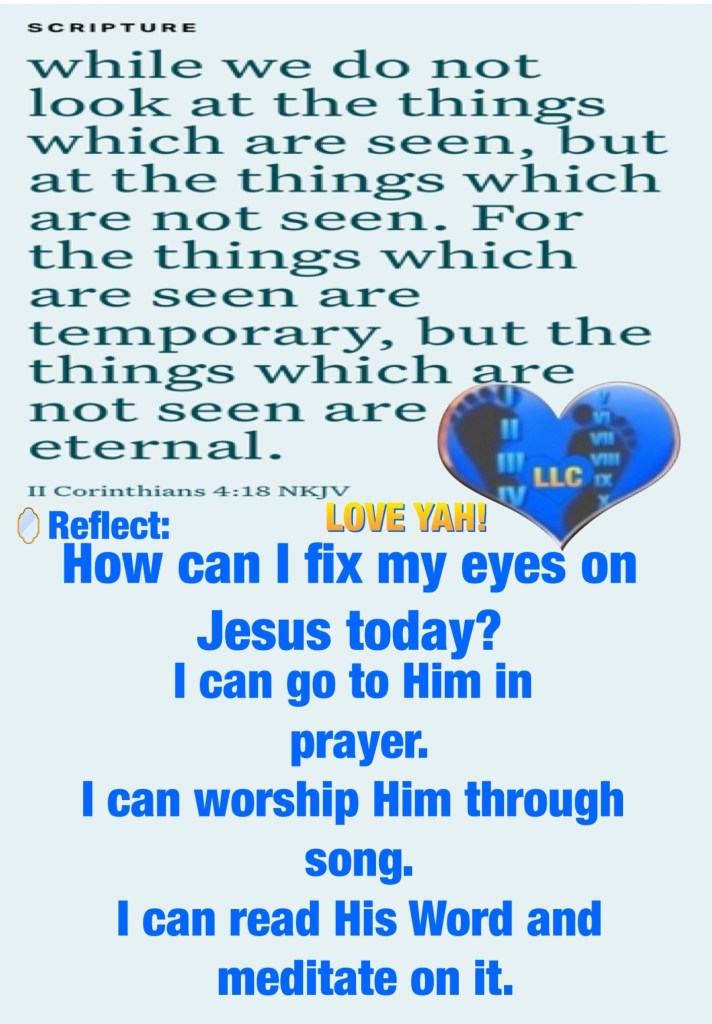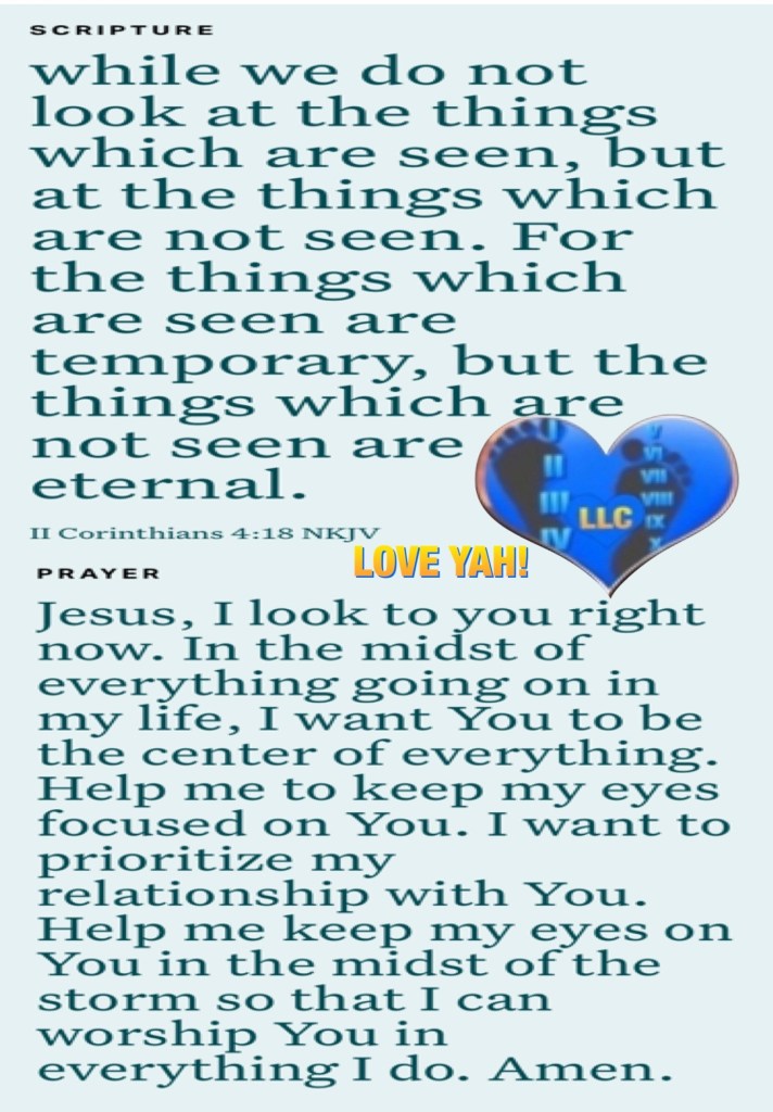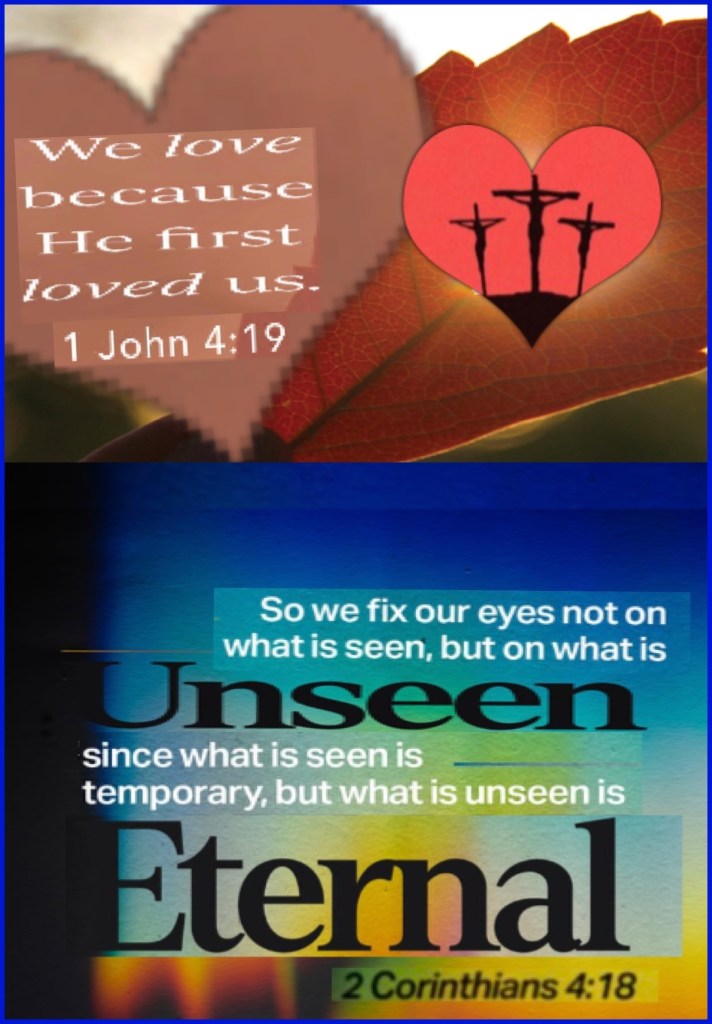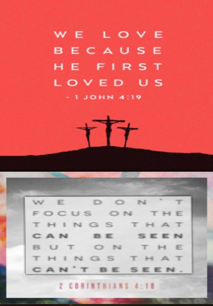 “We love Him because He first loved us.” I John 4:19 “while we do not look at the things which are seen, but at the things which are not seen. For the things which are seen are temporary, but the things which are not seen are eternal.” II Corinthians 4:18