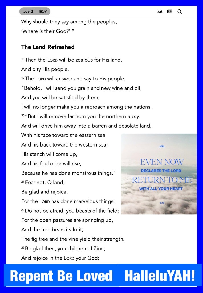 Greetings Beloved, every WORD of Scripture is a plea for us to repent and return to our Heavenly FATHER The GOD Who Created and LOVES us. Keep that in mind as we journey through The Scriptures today, feel YAHβS LOVE, Believe and Walk In It. As sure as we have breath we could use a cleansing, healing, deliverance, increased wisdom discernment and strength and itβs all available to you, enjoy be blessed. HalleluYAH!