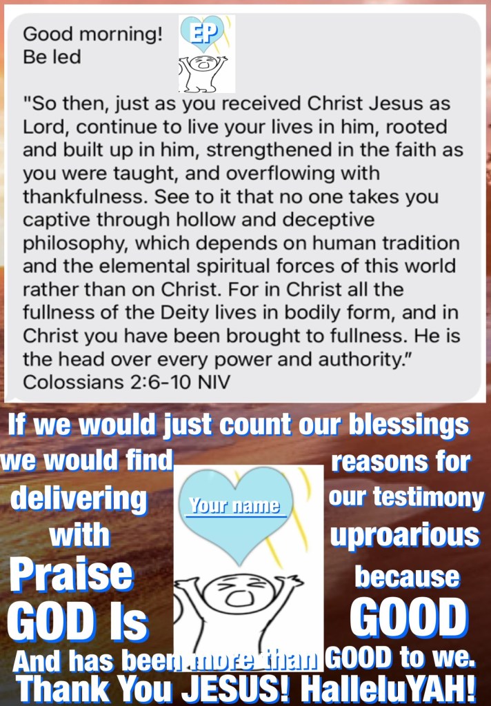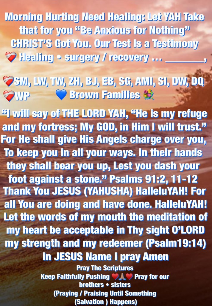Burdened? Let YAH Take that for you “Be Anxious for Nothing” instead trade your Issues for Assurance in THE WORD OF YAH (CHRIST) He’s Already Won this fight we must do as we’re told and Go into the world with The Good News The Gospel of JESUS CHRIST (YAHUSHA HA’MASSIACH) our Savior, Deliverer, LORD, FATHER, CREATOR And GOD. Let not your heart be troubled by what the enemy is doing today surrender All to YHWH Worship Honor Reverence Him HalleluYAH! Always All Ways.
