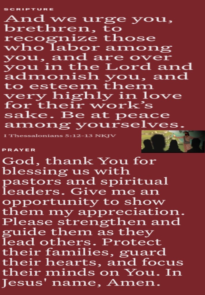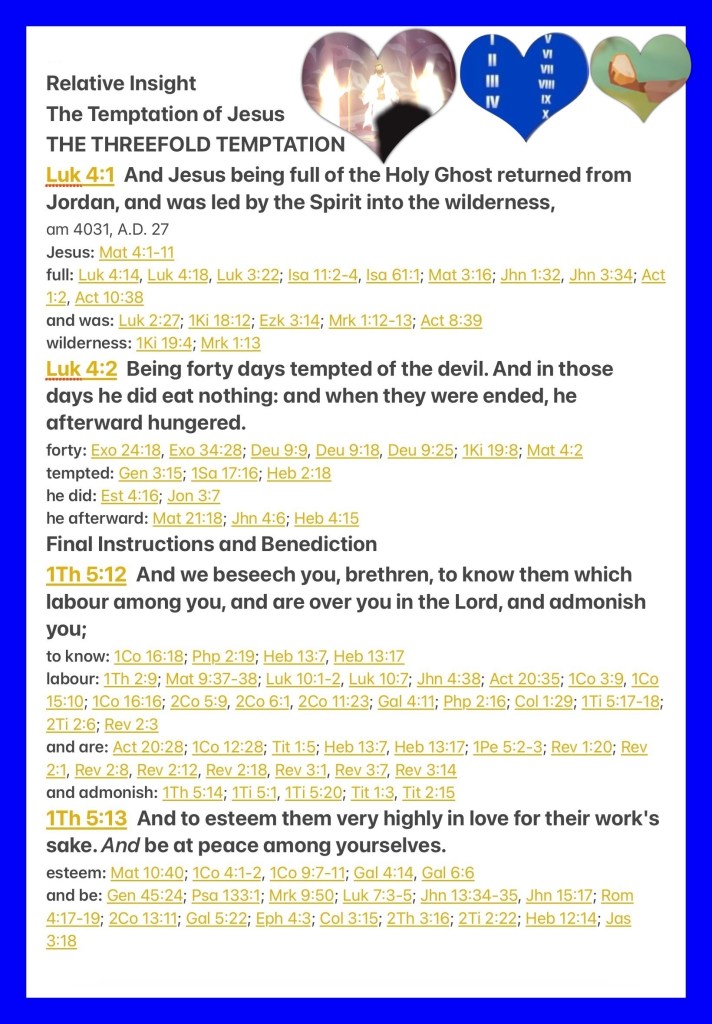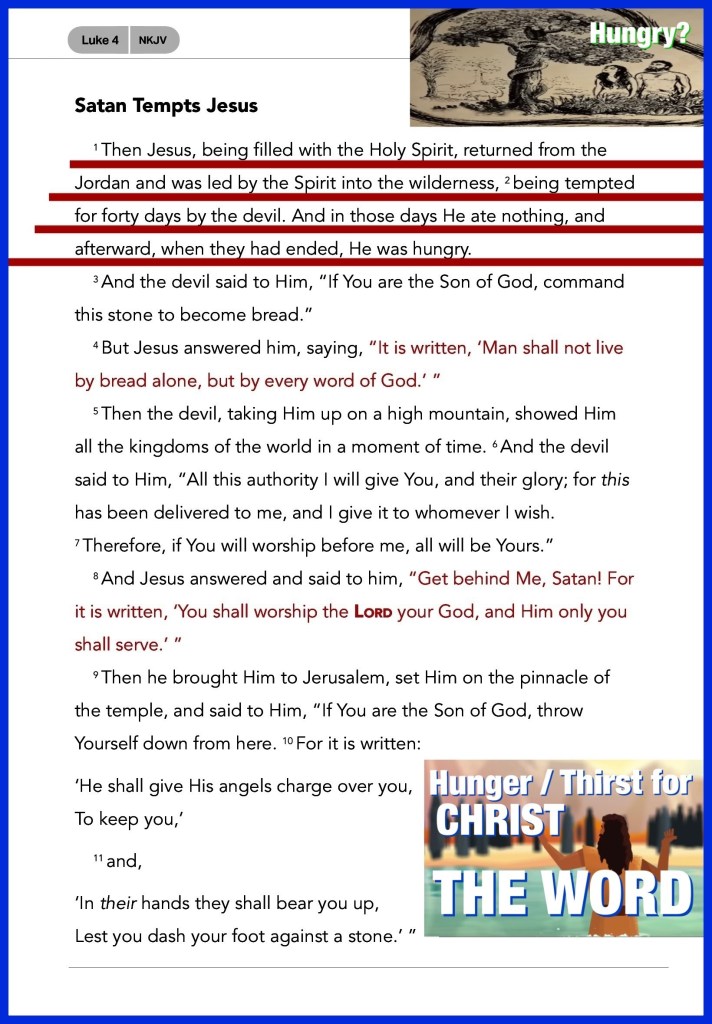 “Then Jesus, being filled with the Holy Spirit, returned from the Jordan and was led by the Spirit into the wilderness, being tempted for forty days by the devil. And in those days He ate nothing, and afterward, when they had ended, He was hungry.” Luke 4:1-2 “And we urge you, brethren, to recognize those who labor among you, and are over you in the Lord and admonish you, and to esteem them very highly in love for their work’s sake. Be at peace among yourselves.” I Thessalonians 5:12-13