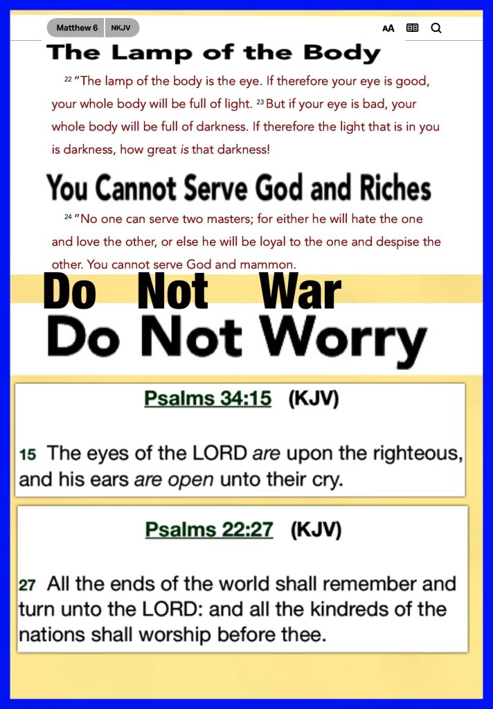Why this war, is not of GOD? GOD IS LOVE! YAH WAGES PEACE NOT WAR, HE IS THE WAY, TRUTH AND THE LIFE NOT Death, YAH CREATES HE DOES NOT Destroy.