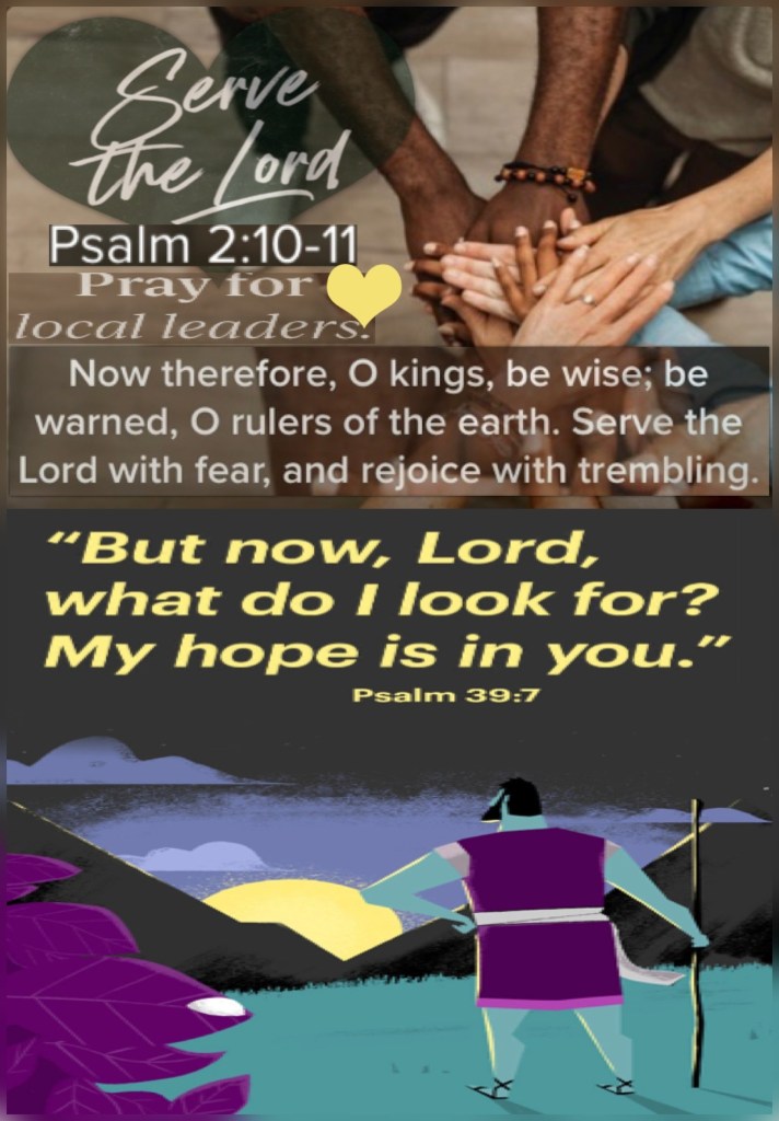 βNow therefore, be wise, O kings; Be instructed, you judges of the earth. Serve the Lord with fear, And rejoice with trembling.β Psalms 2:10-11 ββAnd now, Lord, what do I wait for? My hope is in You.β Psalms 39:7