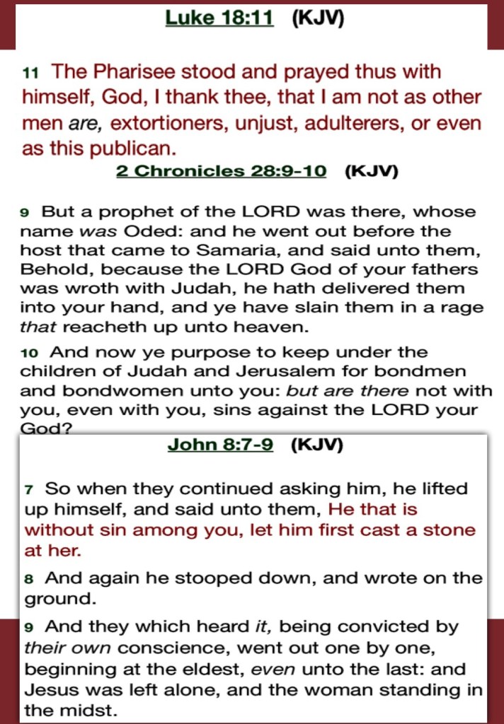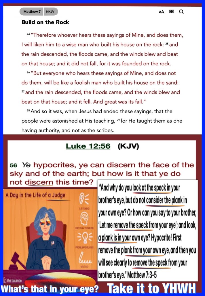 The only good that comes from JUDGING Others is to Judge yourself First, Check Your Motives Intentions Examine Yourselves In The Light Of The ONE RIGHTEOUS JUDGE YAH, ASKING GOD; How Best You Can SERVE Others Galatians 6:1 Brethren, if a man be overtaken in a fault, ye which are spiritual, restore such an one in the spirit of meekness; considering thyself, lest thou also be tempted.