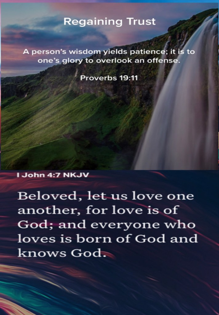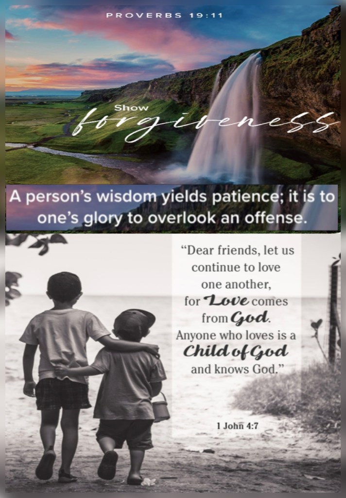 “The discretion of a man makes him slow to anger, And his glory is to overlook a transgression.” Proverbs 19:11 “Beloved, let us love one another, for love is of God; and everyone who loves is born of God and knows God.” I John 4:7