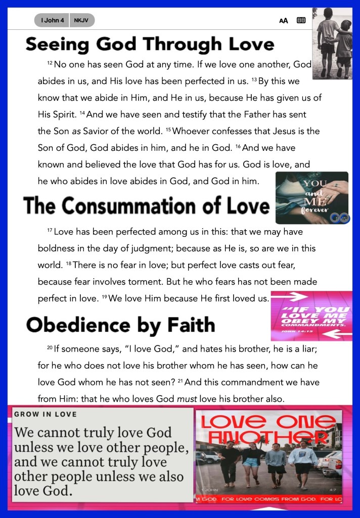 “Let love be without hypocrisy. Abhor what is evil. Cling to what is good.” Romans 12:9 “But above all these things put on love, which is the bond of perfection.” Colossians 3:14