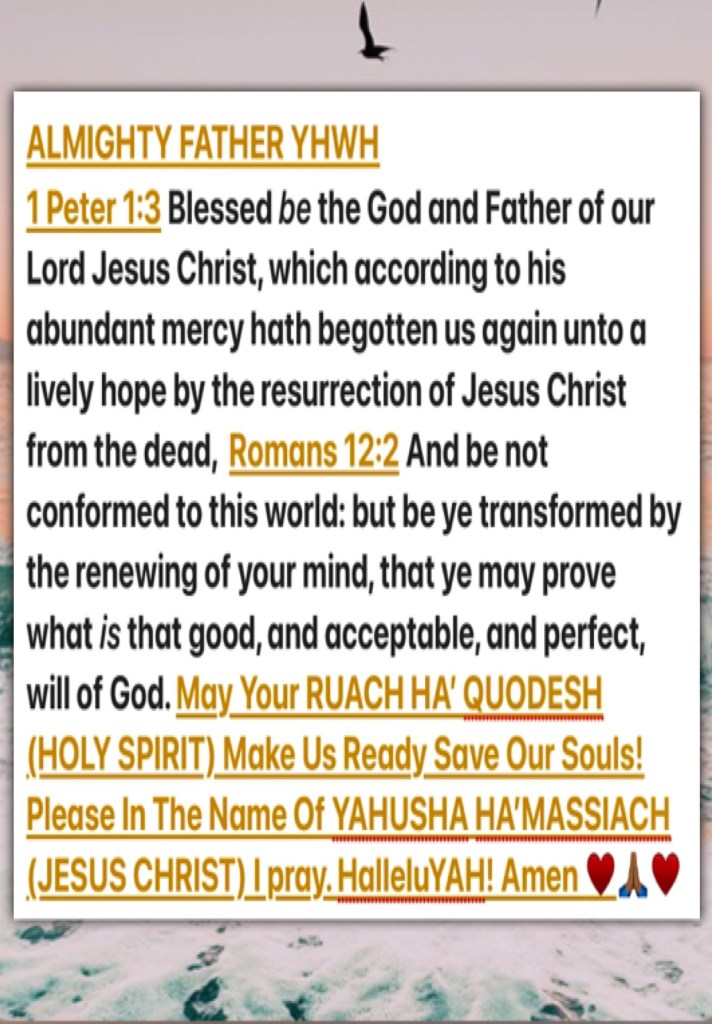 Dear Kind Loving FATHER YAH, today my heart is heavy and so I bring my all to You: have Mercy, Save, Deliver us, Please; wash regenerate renew my heart mind soul and that of all Your children on my prayer list, reading this and around the world, Please Restore Your HOLY SPIRIT Abide in us FATHER YAH, and may Your Works be evidenced in acts of Loving-Kindness, Service First to You and also towards one another our greatest Need is You Prepare us for Your Soon Coming and Life beyond this one grant us Wisdom Discernment and Order our steps fill us with Your LOVE. In The Name Of JESUS CHRIST YAHUSHA HA’MASSIACH I pray. Amen Psalms 51:10 Create in me a clean heart, O God; and renew a right spirit within me.
