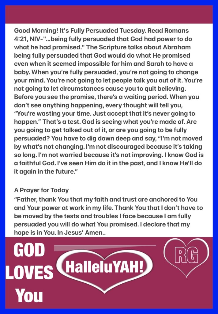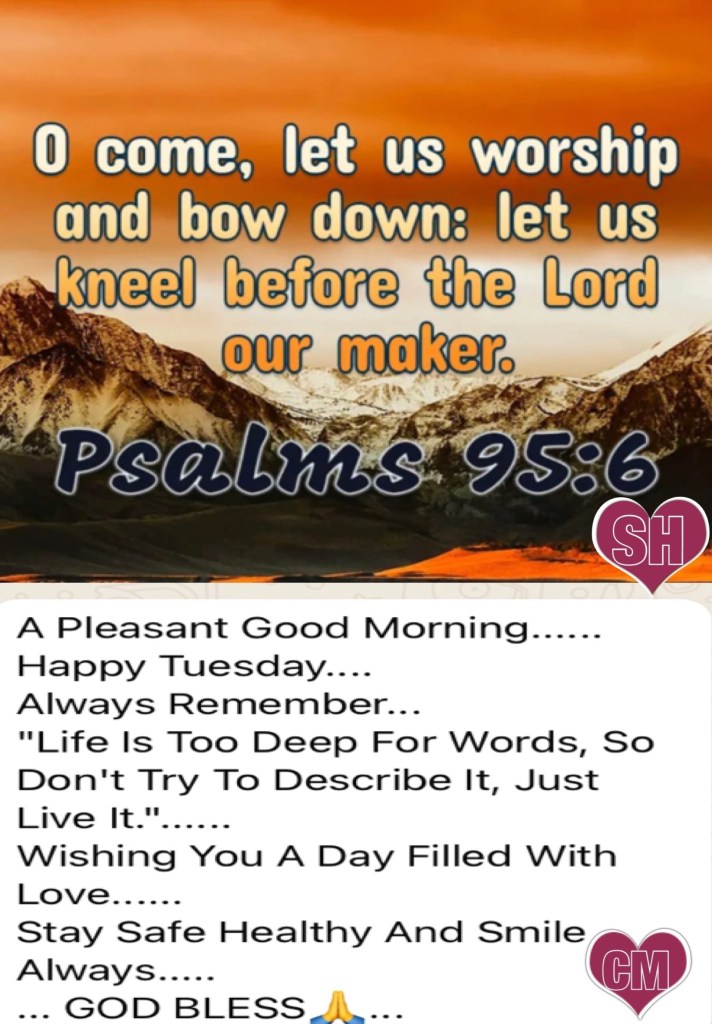 Pride Problem? Check yourself, check your walk, have you somehow Eased God Out of your daily plans? Or have you walked into war unprotected, unprepared? Beloved we are ill equipped for spiritual warfare if we don’t see our need for our Savior; besides YAH Is THE MOST HIGH GOD, walking with CHRIST Is to walk In His Power HalleluYAH! Think about it: “With him is an arm of flesh; but with us is the Lord our God, to help us and to fight our battles.” And the people were strengthened by the words of Hezekiah king of Judah.” II Chronicles 32:8 It’s Take Care Tuesday, Walk Good BeLoved.