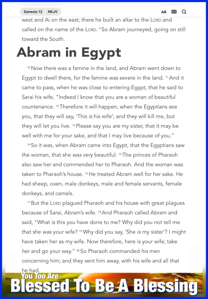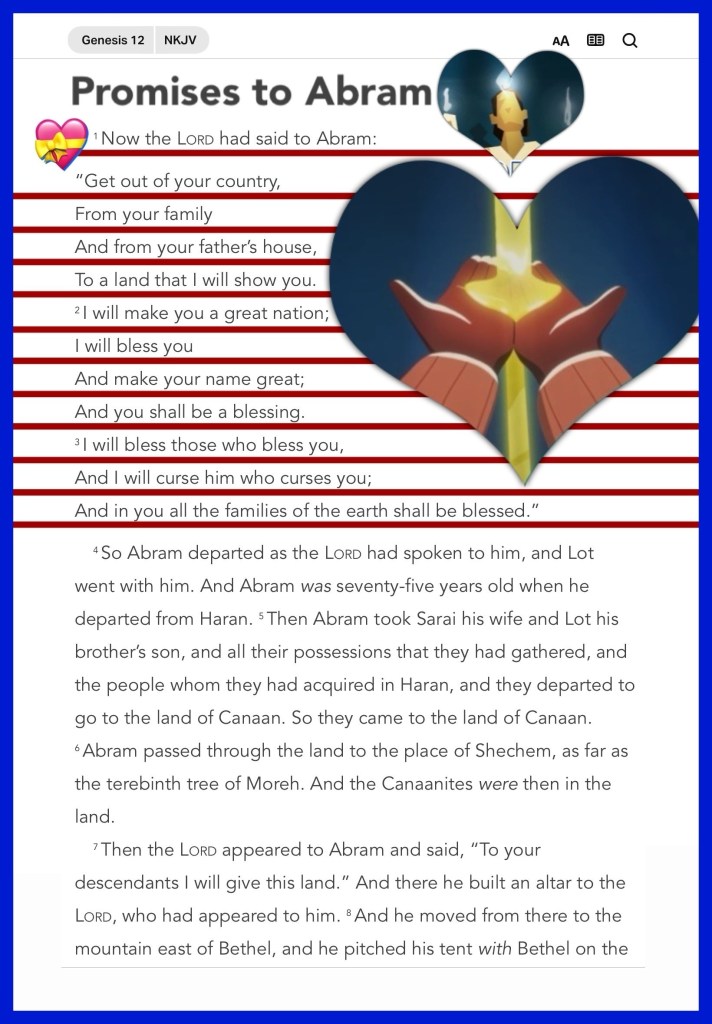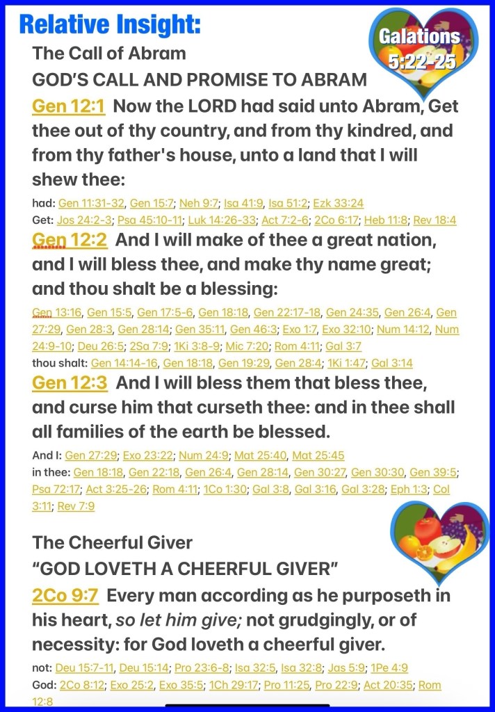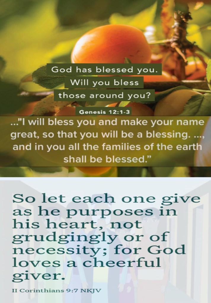 “Now the Lord had said to Abram: “Get out of your country, From your family And from your father’s house, To a land that I will show you. I will make you a great nation; I will bless you And make your name great; And you shall be a blessing. I will bless those who bless you, And I will curse him who curses you; And in you all the families of the earth shall be blessed.”” Genesis 12:1-3 “So let each one give as he purposes in his heart, not grudgingly or of necessity; for God loves a cheerful giver.” II Corinthians 9:7