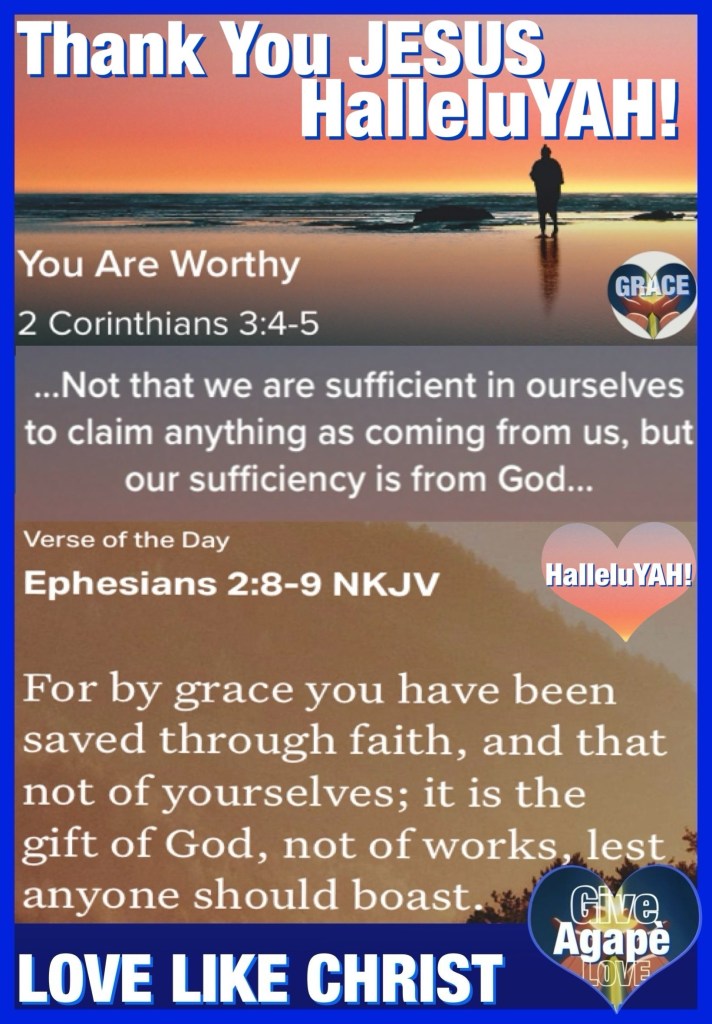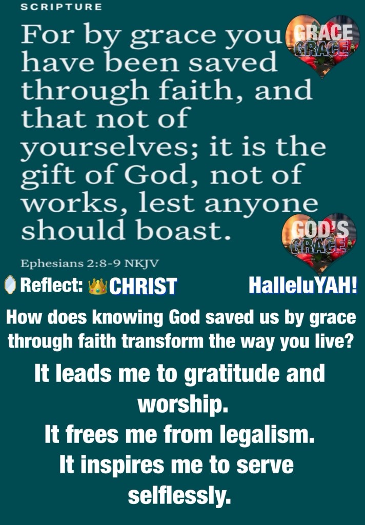 WHAT GRACE HAS DONE: GRACE IS THE ALL SUFFICIENT FAVOR GIFTED OF YAH, CHRIST; our SAVIOR. Who Has Done Everything Possible for the saving of our souls. 2 Corinthians 2:14 Now thanks be unto God, which always causeth us to triumph in Christ, and maketh manifest the savour of his knowledge by us in every place.👑 “I will bless those who bless you, And I will curse him who curses you; And in you all the families of the earth shall be blessed.”” Genesis 12:3 💗John 15:5 I am the vine, ye are the branches: He that abideth in me, and I in him, the same bringeth forth much fruit: for without me ye can do nothing.