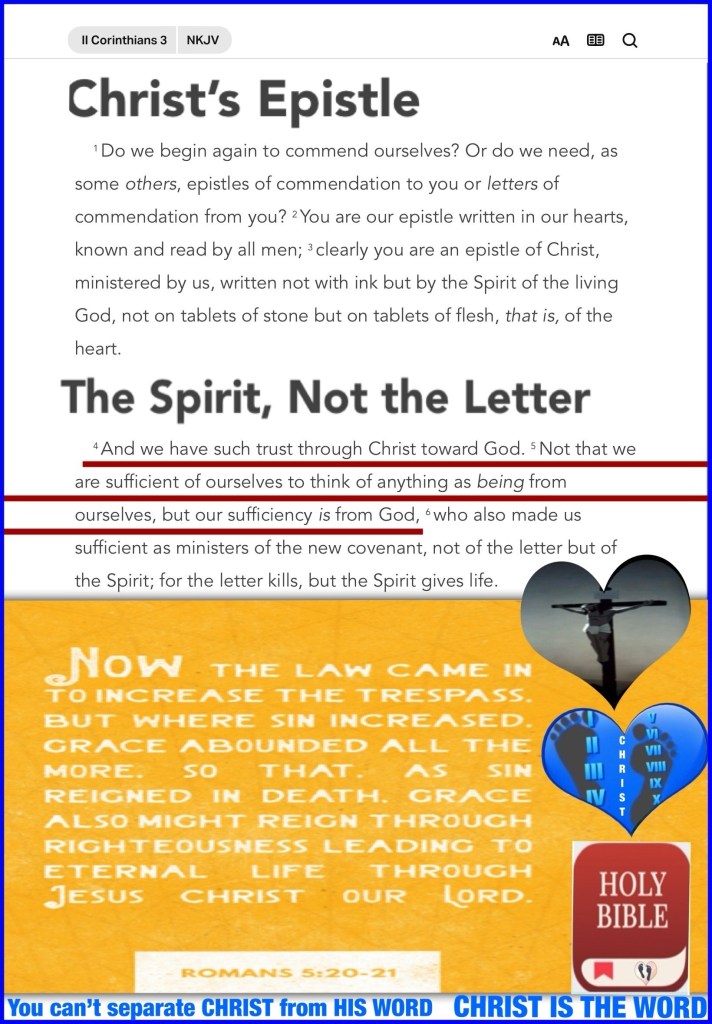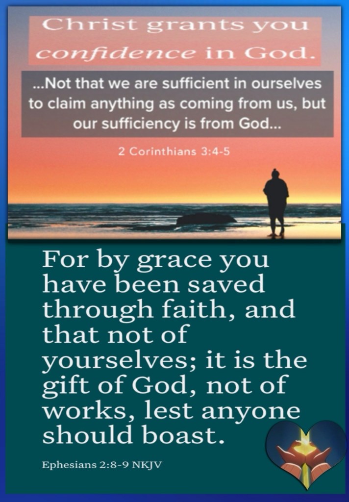 “And we have such trust through Christ toward God. Not that we are sufficient of ourselves to think of anything as being from ourselves, but our sufficiency is from God,” II Corinthians 3:4-5 “For by grace you have been saved through faith, and that not of yourselves; it is the gift of God, not of works, lest anyone should boast.” Ephesians 2:8-9