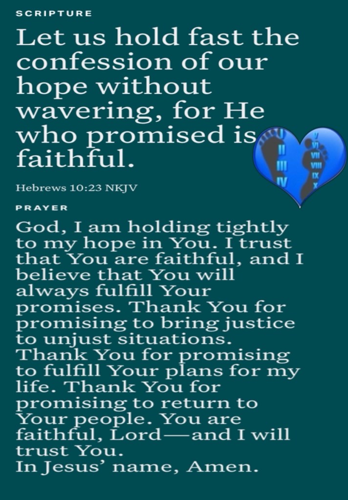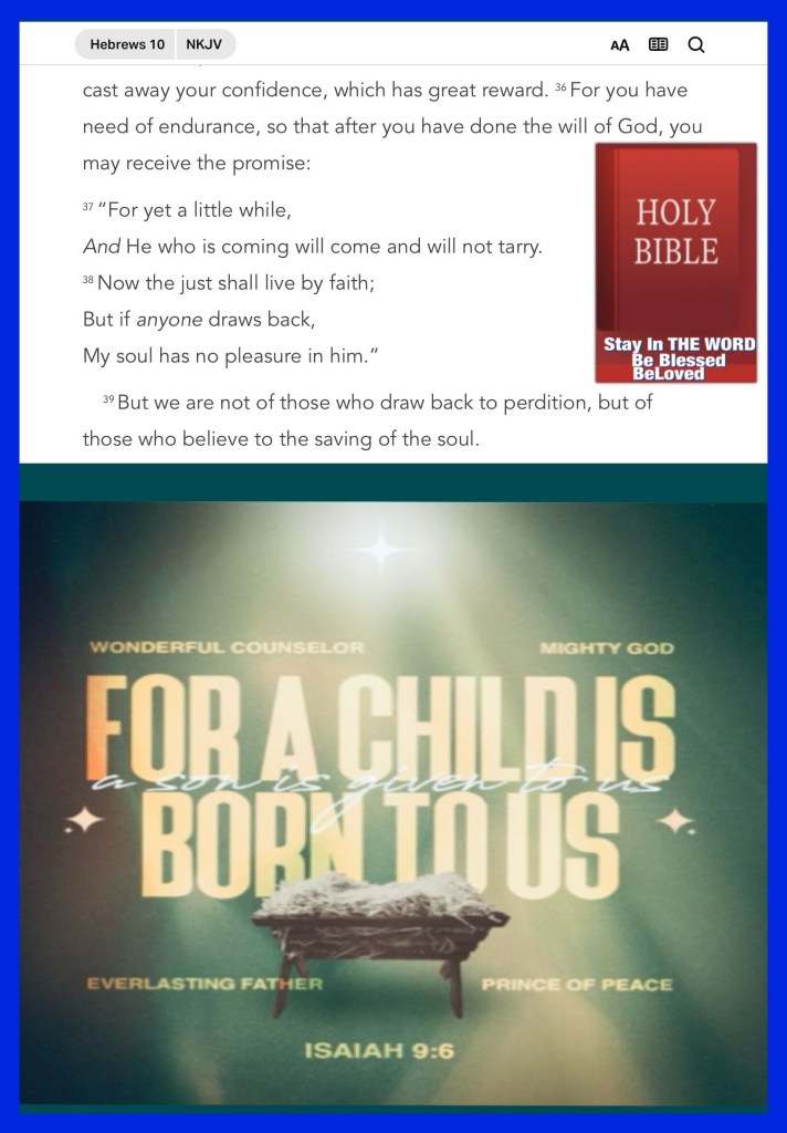 βFor unto us a Child is born, Unto us a Son is given; And the government will be upon His shoulder. And His name will be called Wonderful, Counselor, Mighty God, Everlasting Father, Prince of Peace.β Isaiah 9:6 βLet us hold fast the confession of our hope without wavering, for He who promised is faithful.β Hebrews 10:23