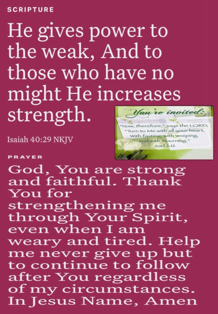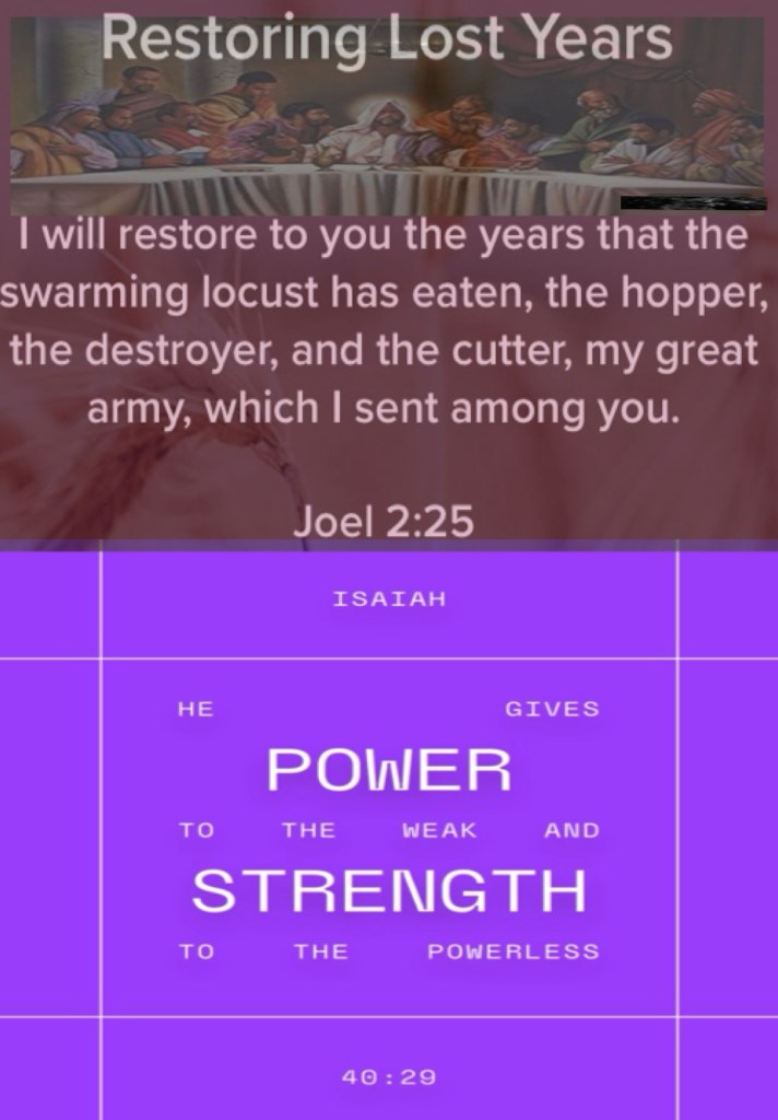 ““So I will restore to you the years that the swarming locust has eaten, The crawling locust, The consuming locust, And the chewing locust, My great army which I sent among you.” Joel 2:25 “He gives power to the weak, And to those who have no might He increases strength.” Isaiah 40:29