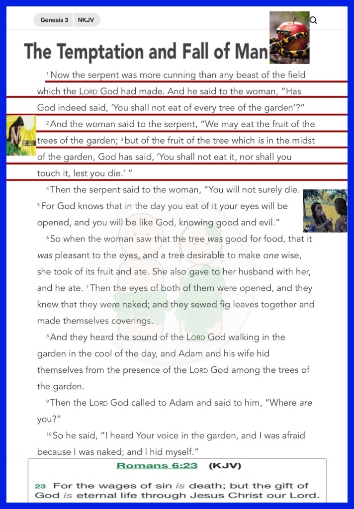 “Now the serpent was more cunning than any beast of the field which the Lord God had made. And he said to the woman, “Has God indeed said, ‘You shall not eat of every tree of the garden’?”” Genesis 3:1