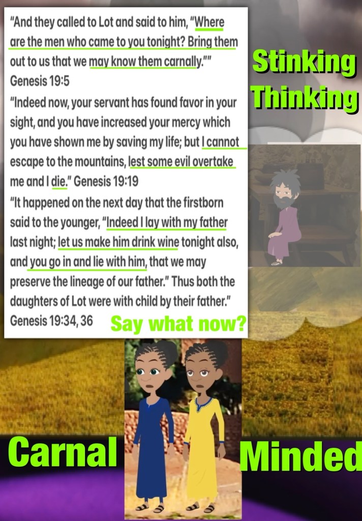 Carnal Knowledge: Generational Evil Reaps Destruction… They knew GOD just saved them from Certain Judgement. There’s no one else on earth, let’s get to Know Daddy; Really? I’m Not judging, I’m sure it must’ve sounded like a “good” idea, here’s why: when I read Genesis 19 all I see are the various spirits at play, further evidence that the spiritual warfare that surrounds us is strategic and deadly; these young ladies were raised into a culture of sexual immorality / depravity / self gratification / glorification / conflict / cowardice/ confusion (etc) All of which have spirits (demons) attached. They were literally on the heels of Being Saved, what they Needed was an Intensive Course In THE WORD At *THE HOLY SPIRIT: BREATH OF LIFE HIGH SCHOOL That they might Know their Heavenly FATHER YHWH, Be Filled With *THE RUACH HA’QUODESH And Receive Future Bride Of CHRIST Preparation. They Needed to have gotten their house in order. Would that have stopped several other bad decisions and poor judgment (probably not, the enemy loves to attack our minds) but I believe when we Know Better, we Do Better. Happy Preparation Day BeLoved, Please Keep Seeking To Know our Heavenly FATHER, HalleluYAH! Walk Good.