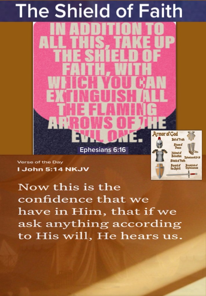 Today’s study: Genesis 24, Today’s Verses: “above all, taking the shield of faith with which you will be able to quench all the fiery darts of the wicked one.” Ephesians 6:16 “Now this is the confidence that we have in Him, that if we ask anything according to His will, He hears us.” I John 5:14