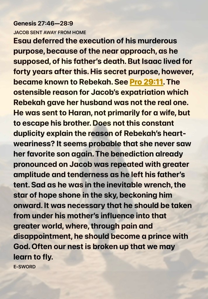 Today’s study: Genesis 28, Today’s Verses: “rejoicing in hope, patient in tribulation, continuing steadfastly in prayer;” Romans 12:12 “Then He spoke a parable to them, that men always ought to pray and not lose heart,” Luke 18:1 (please read these chapters also for a greater blessing)