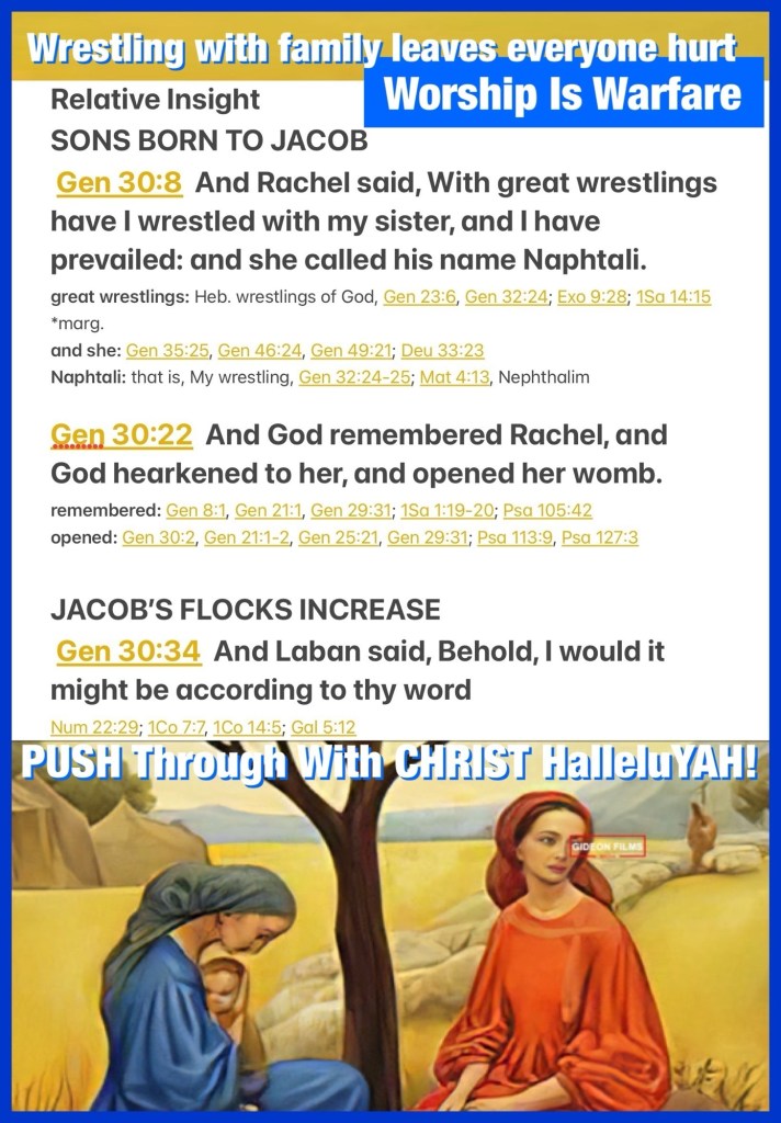 “Then Rachel said, “With great wrestlings I have wrestled with my sister, and indeed I have prevailed.” So she called his name Naphtali.” Genesis 30:8