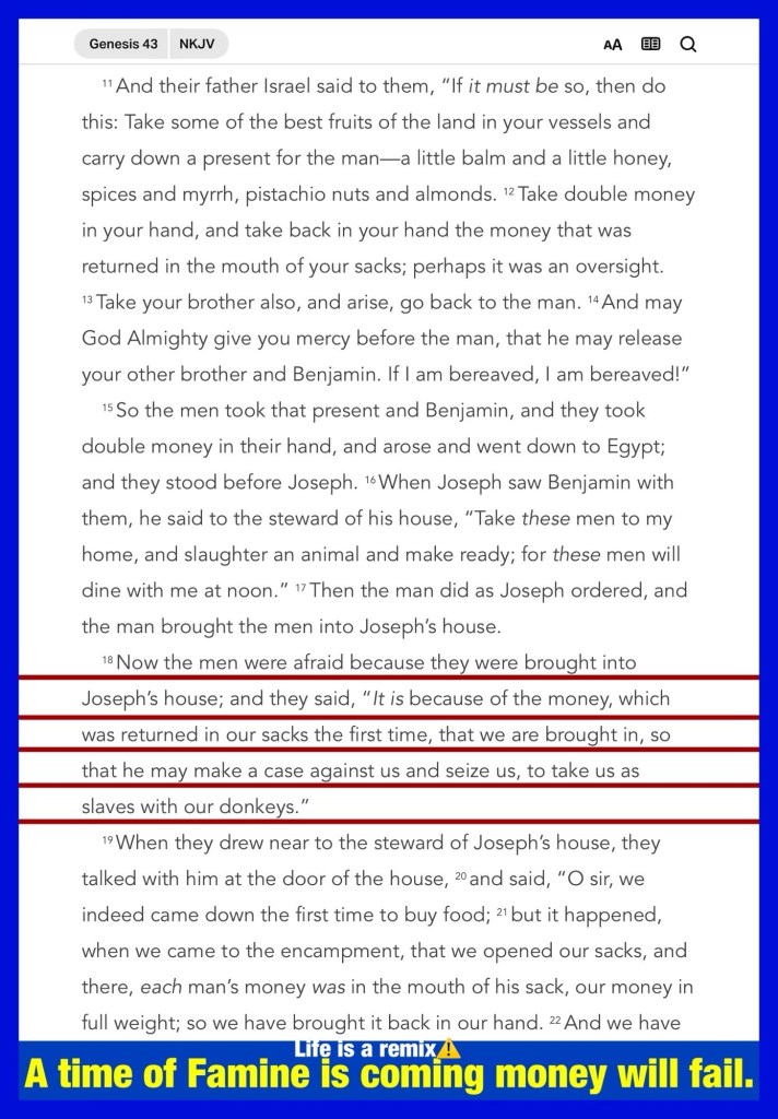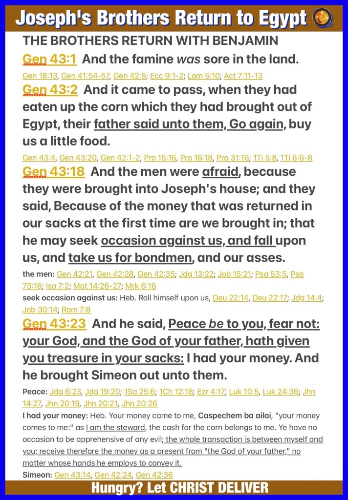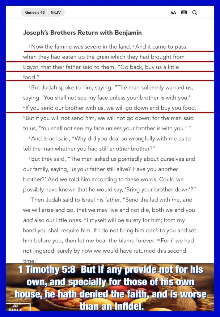 “Now the famine was severe in the land. And it came to pass, when they had eaten up the grain which they had brought from Egypt, that their father said to them, “Go back, buy us a little food.”” Genesis 43:1-2