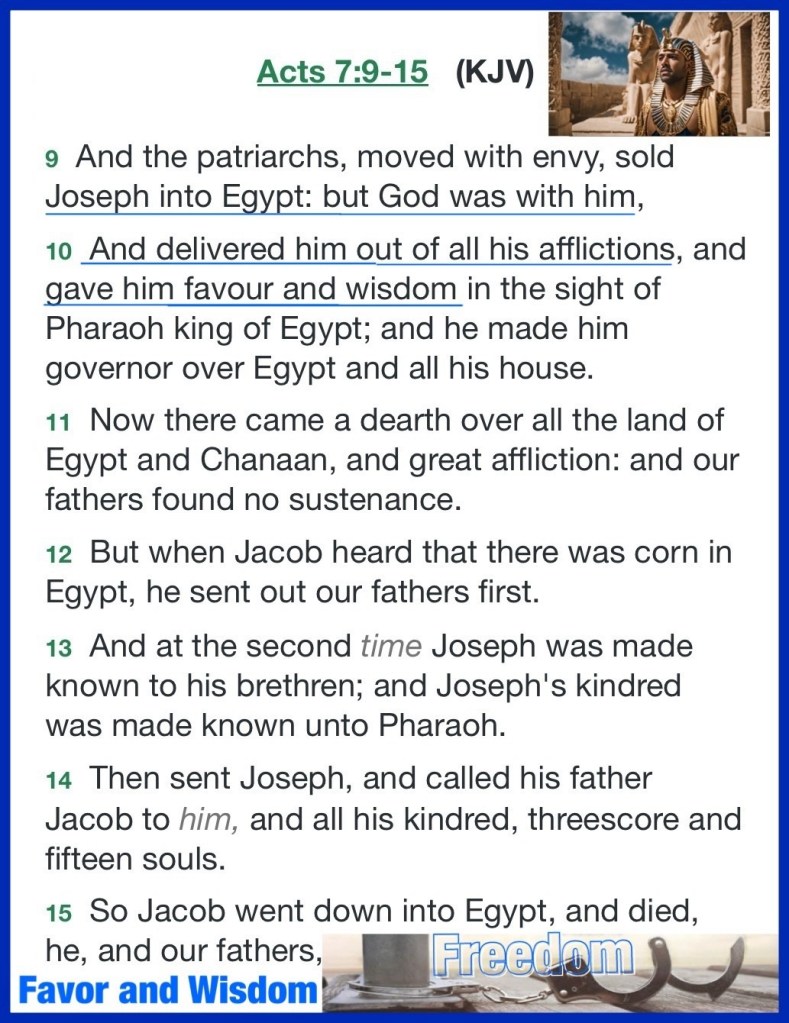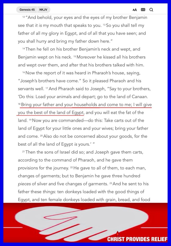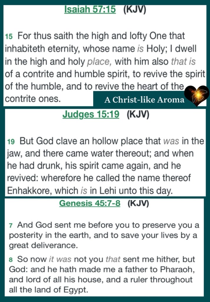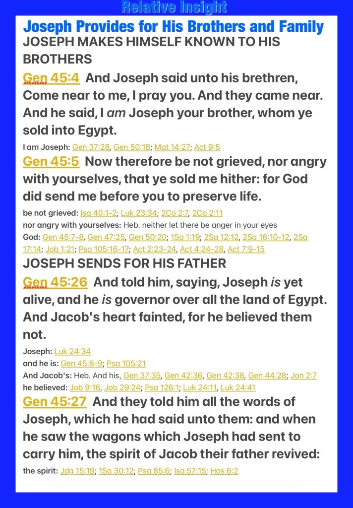 “And Joseph said to his brothers, “Please come near to me.” So they came near. Then he said: “I am Joseph your brother, whom you sold into Egypt. But now, do not therefore be grieved or angry with yourselves because you sold me here; for God sent me before you to preserve life. …And they told him, saying, “Joseph is still alive, and he is governor over all the land of Egypt.” And Jacob’s heart stood still, because he did not believe them. But when they told him all the words which Joseph had said to them, and when he saw the carts which Joseph had sent to carry him, the spirit of Jacob their father revived.” Genesis 45:4-5, 26-27