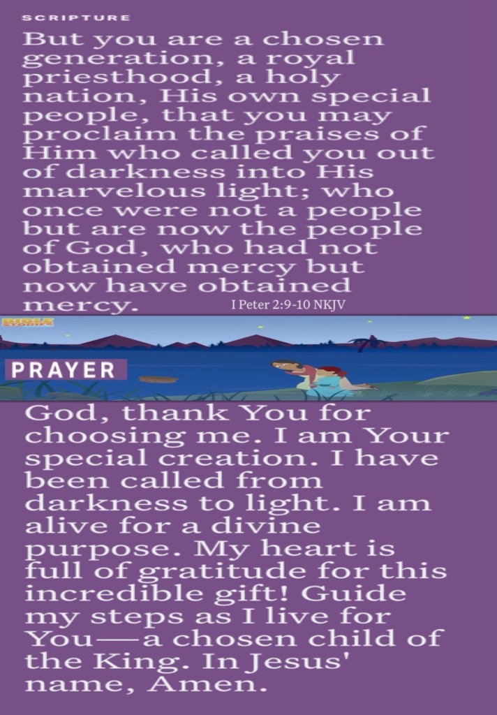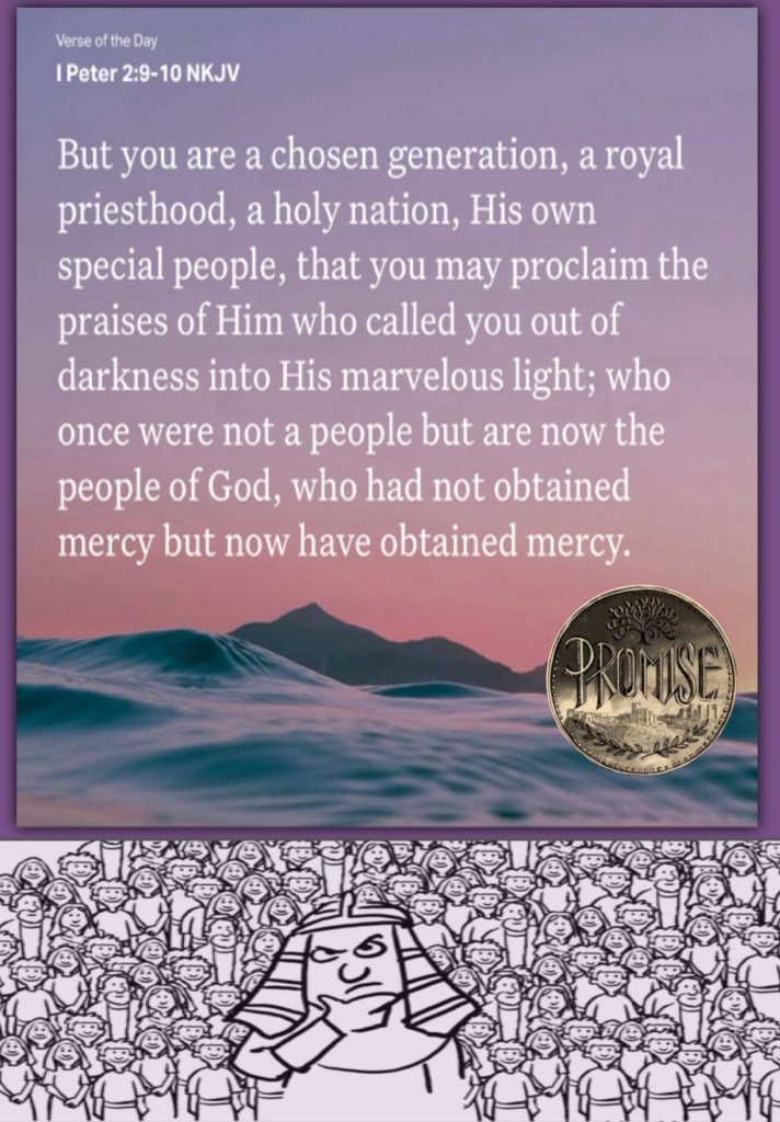 Today’s study: *Exodus 2, Today’s Verses: “But be doers of the word, and not hearers only, deceiving yourselves. For if anyone is a hearer of the word and not a doer, he is like a man observing his natural face in a mirror; for he observes himself, goes away, and immediately forgets what kind of man he was. But he who looks into the perfect law of liberty and continues in it, and is not a forgetful hearer but a doer of the work, this one will be blessed in what he does.”James 1:22-25 “But you are a chosen generation, a royal priesthood, a holy nation, His own special people, that you may proclaim the praises of Him who called you out of darkness into His marvelous light; who once were not a people but are now the people of God, who had not obtained mercy but now have obtained mercy.” I Peter 2:9-10💌🛡️