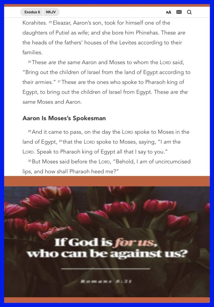 Today’s study Exodus 6, Today’s verses: “And the world is passing away, and the lust of it; but he who does the will of God abides forever.” I John 2:17 “Whenever I am afraid, I will trust in You.” Psalms 56:3