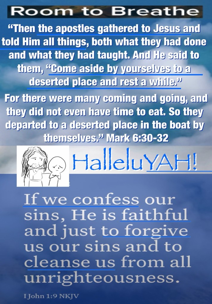 Today’s study Exodus 10, today’s verses: “Then the apostles gathered to Jesus and told Him all things, both what they had done and what they had taught. And He said to them, “Come aside by yourselves to a deserted place and rest a while.” For there were many coming and going, and they did not even have time to eat. So they departed to a deserted place in the boat by themselves.” Mark 6:30-32 “If we confess our sins, He is faithful and just to forgive us our sins and to cleanse us from all unrighteousness.” I John 1:9