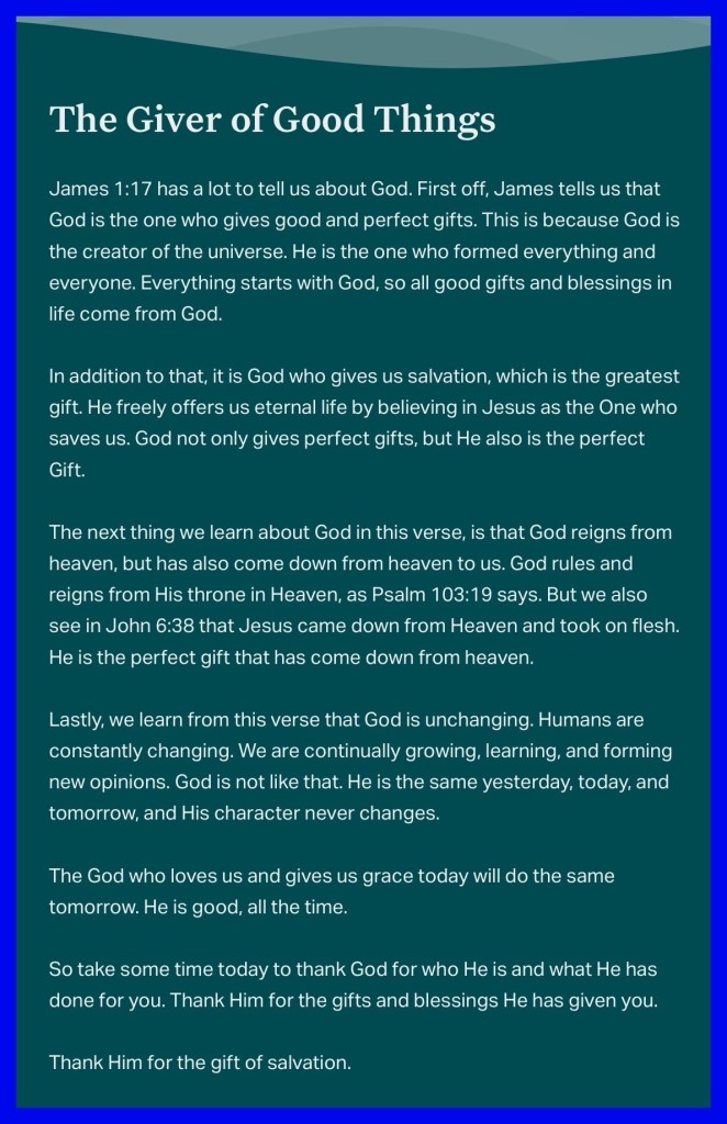 Today’s message Exodus 15, today’s verses: “But let your ‘Yes’ be ‘Yes,’ and your ‘No,’ ‘No.’ For whatever is more than these is from the evil one.” Matthew 5:37 “Every good gift and every perfect gift is from above, and comes down from the Father of lights, with whom there is no variation or shadow of turning.” James 1:17