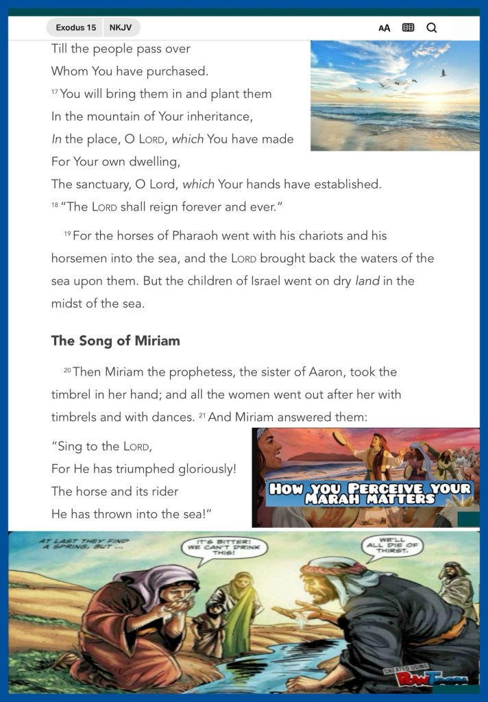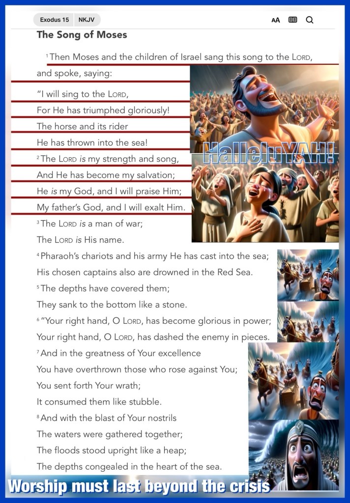 “Then Moses and the children of Israel sang this song to the Lord, and spoke, saying: “I will sing to the Lord, For He has triumphed gloriously! The horse and its rider He has thrown into the sea! The Lord is my strength and song, And He has become my salvation; He is my God, and I will praise Him; My father’s God, and I will exalt Him.”Exodus 15:1-2