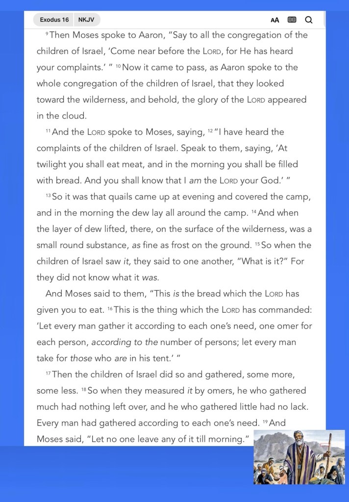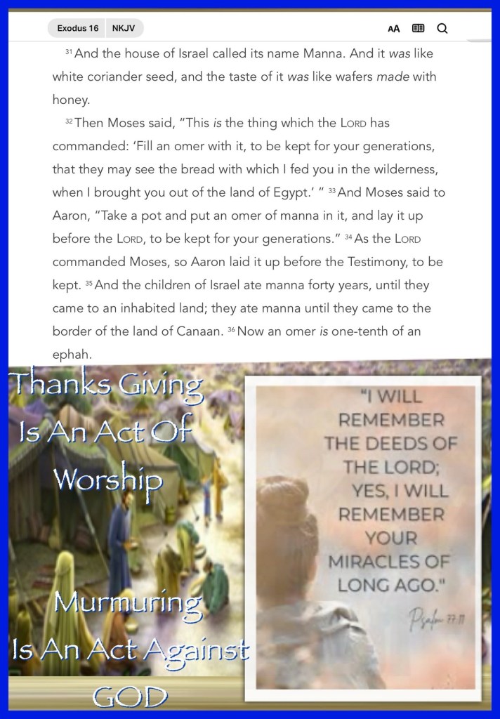Today’s message Exodus 16, today’s verses: “Let us search out and examine our ways, And turn back to the Lord;”Lamentations 3:40 ““You are worthy, O Lord, To receive glory and honor and power; For You created all things, And by Your will they exist and were created.””Revelation 4:11