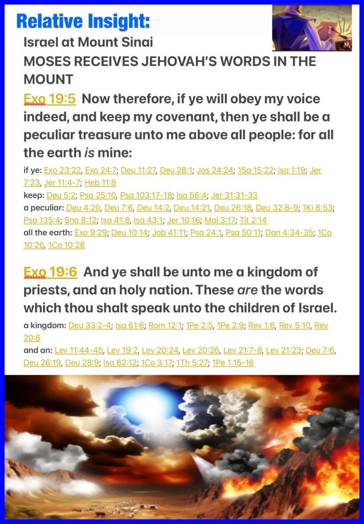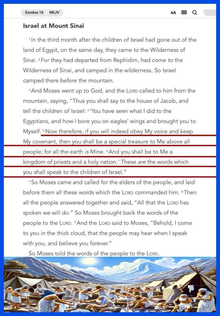 “Now therefore, if you will indeed obey My voice and keep My covenant, then you shall be a special treasure to Me above all people; for all the earth is Mine. And you shall be to Me a kingdom of priests and a holy nation.’ These are the words which you shall speak to the children of Israel.”” Exodus 19:5-6