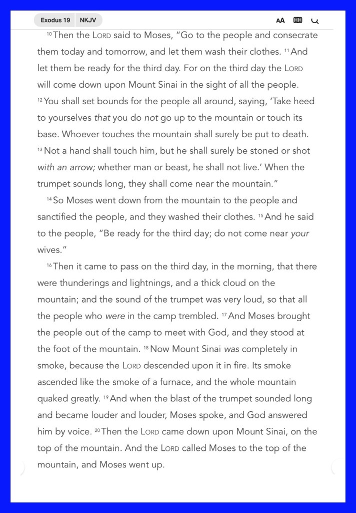 Today’s message Exodus 19, today’s verses: “Or do you not know that your body is the temple of the Holy Spirit who is in you, whom you have from God, and you are not your own? For you were bought at a price; therefore glorify God in your body and in your spirit, which are God’s.” I Corinthians 6:19-20 “For we are His workmanship, created in Christ Jesus for good works, which God prepared beforehand that we should walk in them.” Ephesians 2:10