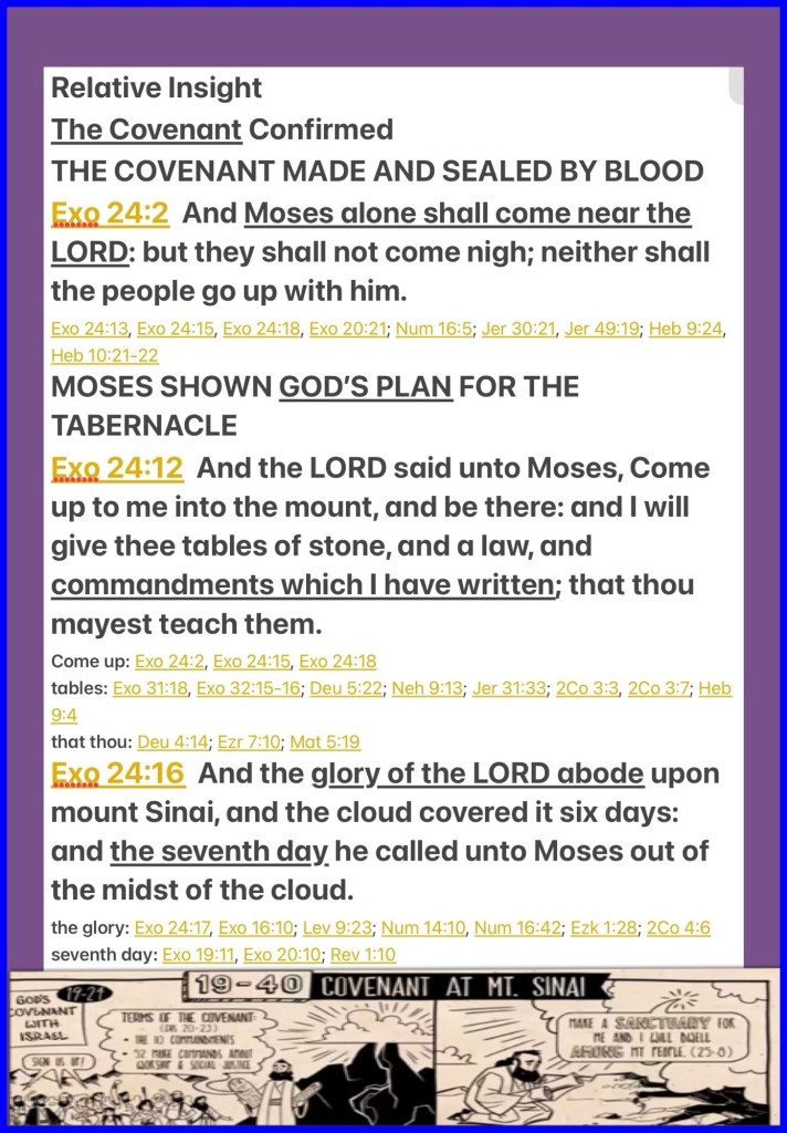 “Then the Lord said to Moses, “Come up to Me on the mountain and be there; and I will give you tablets of stone, and the law and commandments which I have written, that you may teach them.” Now the glory of the Lord rested on Mount Sinai, and the cloud covered it six days. And on the seventh day He called to Moses out of the midst of the cloud.” Exodus 24:12, 16