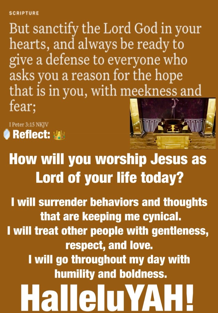 Today’s message Exodus 30, today’s verses: “In the multitude of my anxieties within me, Your comforts delight my soul.” Psalms 94:19 “But sanctify the Lord God in your hearts, and always be ready to give a defense to everyone who asks you a reason for the hope that is in you, with meekness and fear;” I Peter 3:15 NKJV