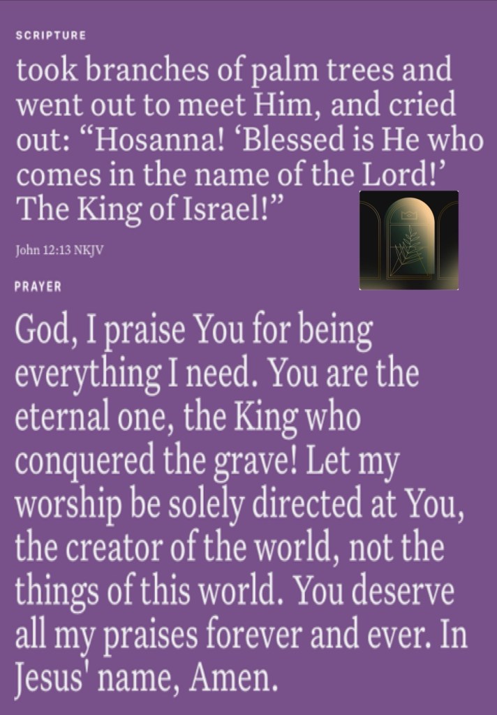 Today’s message Exodus 33, today’s verses: ““Rejoice greatly, O daughter of Zion! Shout, O daughter of Jerusalem! Behold, your King is coming to you; He is just and having salvation, Lowly and riding on a donkey, A colt, the foal of a donkey.” Zechariah 9:9 “took branches of palm trees and went out to meet Him, and cried out: “Hosanna! ‘Blessed is He who comes in the name of the Lord!’ The King of Israel!”” John 12:13