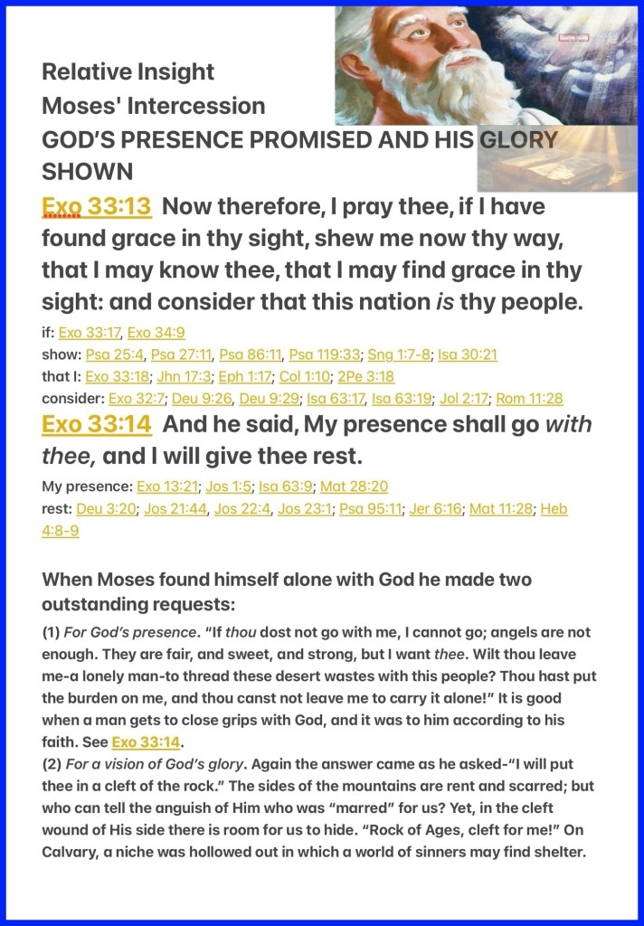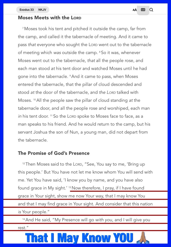 “Now therefore, I pray, if I have found grace in Your sight, show me now Your way, that I may know You and that I may find grace in Your sight. And consider that this nation is Your people.” And He said, “My Presence will go with you, and I will give you rest.””Exodus 33:13-14