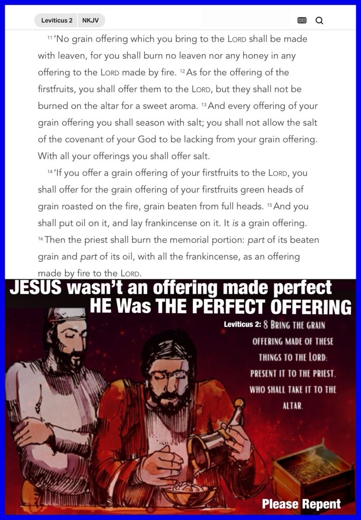 Greetings BeLoved child of THE MOST HIGH GOD YAH ELOHIM In All Three Persons (THE FATHER: YAHUAH (JEHOVAH), THE SON: YAHUSHA HA’MASSIACH (JESUS CHRIST) THE WORD OF GOD, THE HOLY (SET APART) SPIRIT BREATH OF GOD) our CREATOR The Only Collective That Is GOD. There’s a spiritual battle brewing and a counterfeit always at play and only YAH Can Deliver us. Here’s a Grain Of TRUTH YAH’S Offering today: Wayyiqra *Hebrew Word for : Leviticus: And He (THE LORD YAH) Called (Leviticus 1:1), He’s Calling us all daily to Separate ourselves for Holy use, Heed His WORD, Learn His Ways, Choose to Worship Him and Be Saved, BeLoved